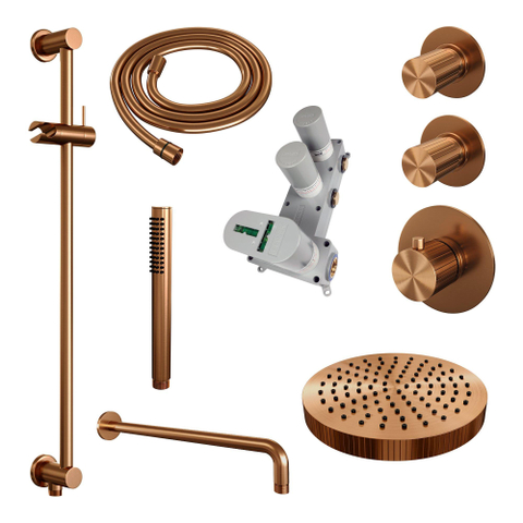 BRAUER Stripe Douche de tête thermostatique encastrée - SET 08 - pomme de douche 25cm - bras mural courbé - douchette à main sur barre - flexible de douche - barre coulissante intégrée - cuivre brossé PVD