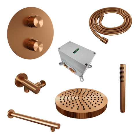 BRAUER Stripe Douche de tête thermostatique encastrée - 3 voies - ronde - SET 37 - pomme de douche 25cm - bras mural droit - douchette à main barre - flexible de douche - coude de raccord mural - cuivre brossé PVD