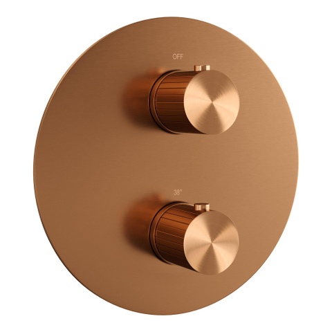 BRAUER Stripe Douche de tête thermostatique encastrée - 3 voies - ronde - SET 41 - pomme de douche 25 cm - bras mural courbé - douchette 3 positions - flexible de douche - coude mural - cuivre brossé PVD