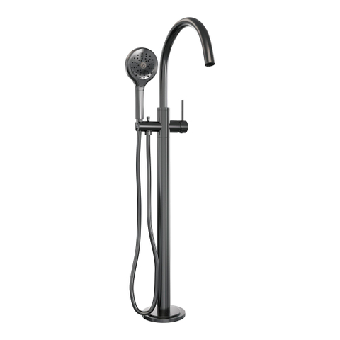 BRAUER Stripe Mitigeur de baignoire sur pied - SET 02 - Douchette à main 3 positions - Flexible de douche - gunmetal brossé PVD