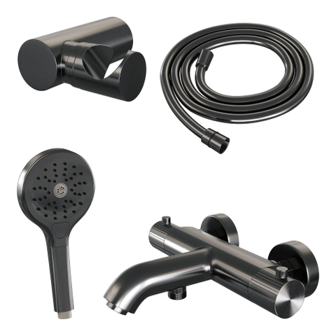 BRAUER Stripe Mitigeur thermostatique douche bain SET 04 - apparent - support mural - douchette 3 positions - flexible de douche - gunmetal brossé PVD