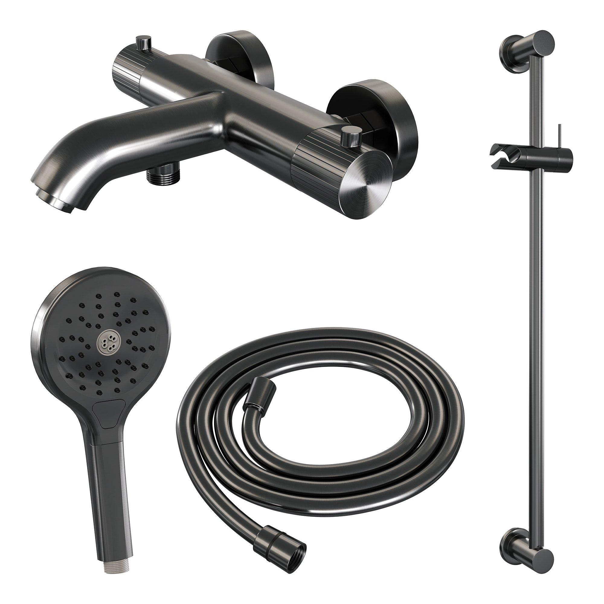BRAUER Stripe Mitigeur thermostatique douche bain - SET 02 - apparent - barre coulissante - douchette 3 positions - flexible de douche - gunmetal brossé PVD