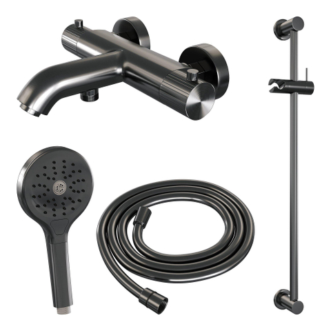 Avec ce mitigeur thermostatique douche bain de haute qualité, transformez votre salle de bains en une oasis de confort et de style. La combinaison d'une barre coulissante robuste, d'une douchette à trois positions différentes et d'un flexible de douche souple offre une expérience de douche polyvalente que vous voudrez revivre chaque jour. Grâce à la finition gunmetal brossé PVD, votre salle de bains bénéficie d'une apparence moderne et luxueuse qui s'adapte facilement à divers styles d'intérieur. De plus, cet ensemble vous garantit un réglage thermostatique, vous permettant de toujours profiter de la température parfaite sans fluctuations. Ainsi, la douche devient non seulement pratique, mais aussi un moment de détente et de plaisir chez vous.