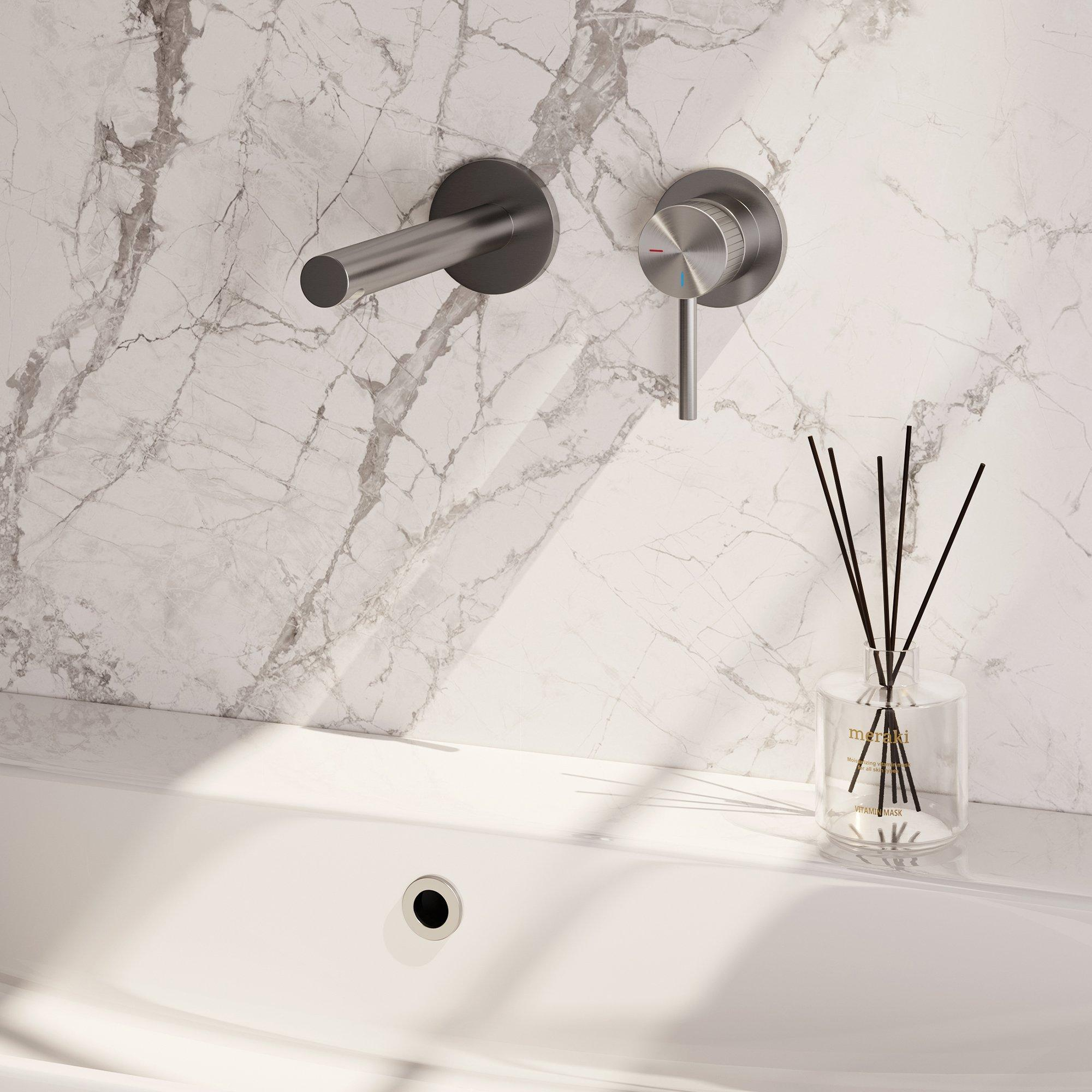 Avec ce mitigeur lavabo encastré, vous donnez à votre salle de bains une apparence moderne et raffinée. Le design épuré avec bec droit et rosaces discrètes offre un look intemporel qui s'intègre facilement dans divers styles d'intérieur. Grâce aux matériaux de haute qualité et à la finition PVD brossée couleur inox, le robinet dégage non seulement de l'élégance, mais offre également une solution durable et facile d'entretien. Le robinet est conçu pour être encastré de manière harmonieuse, ce qui donne à votre lavabo un aspect calme et ordonné. Ainsi, vous profitez chaque jour d'un ajout pratique et élégant qui complète votre salle de bains et améliore la facilité d'utilisation. Un choix intelligent pour ceux qui veulent combiner qualité et design sans compromettre la fonctionnalité.