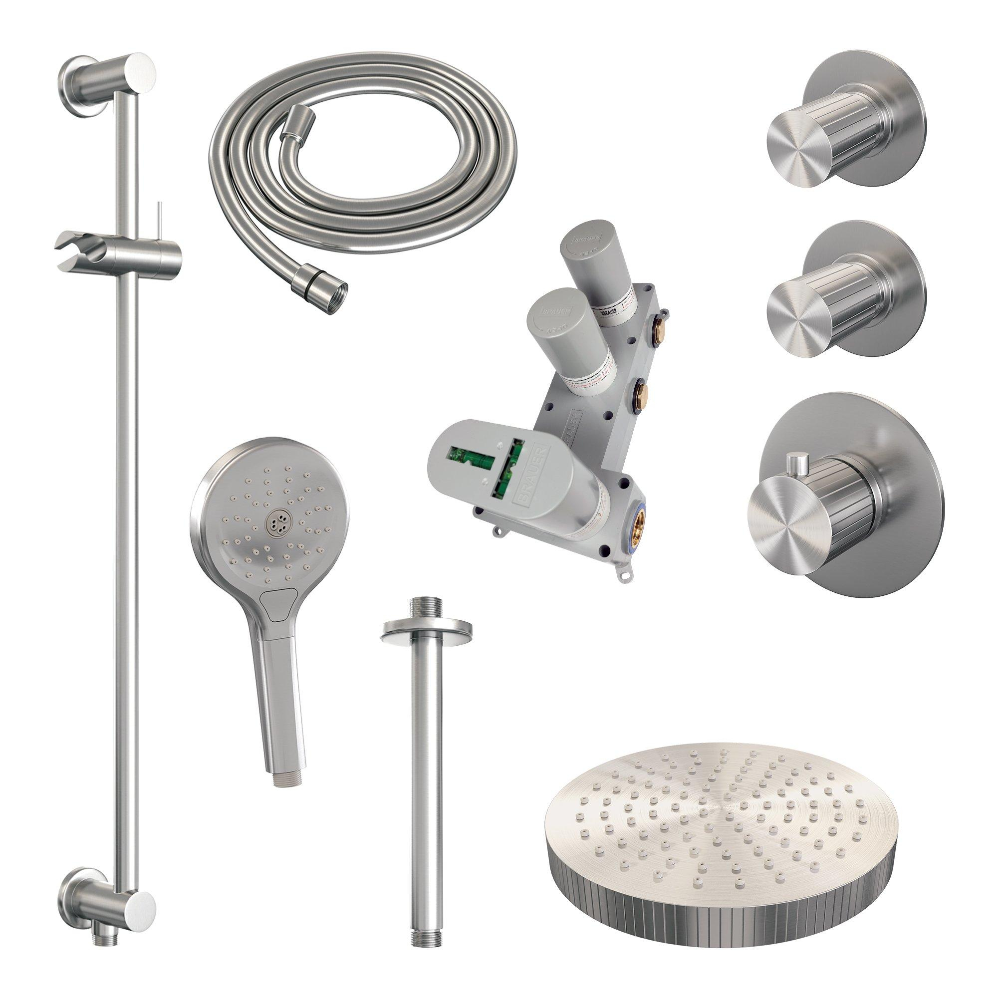 BRAUER Stripe Douche de tête thermostatique encastrée - SET 12 - pomme de douche 25cm - bras de plafond - douchette 3 positions - flexible de douche - barre coulissante intégrée - couleur inox brossé PVD