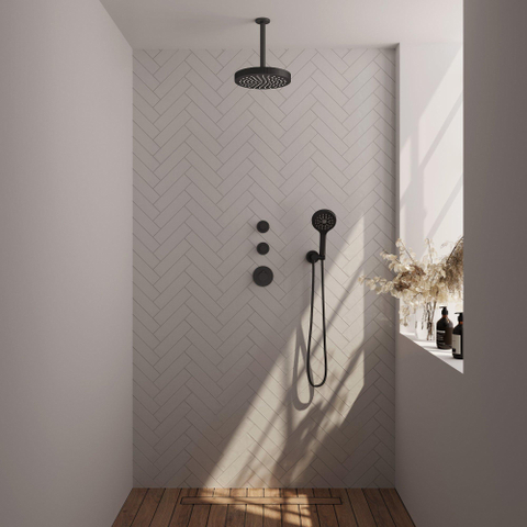 La surface noire mate confère à cette douche de pluie une apparence intemporelle et élégante qui s’harmonise parfaitement avec les tendances modernes de la salle de bains. Grâce au design minimaliste et aux lignes épurées, votre salle de bains devient un véritable point focal. Le bras plafond crée un effet flottant, donnant l’impression que la pomme de douche sort directement du plafond. Ce détail subtil augmente la sensation de luxe et rend l’ensemble particulièrement élégant. Vous créez ainsi une salle de bains dont vous êtes fier et qui impressionne tous ceux qui entrent.