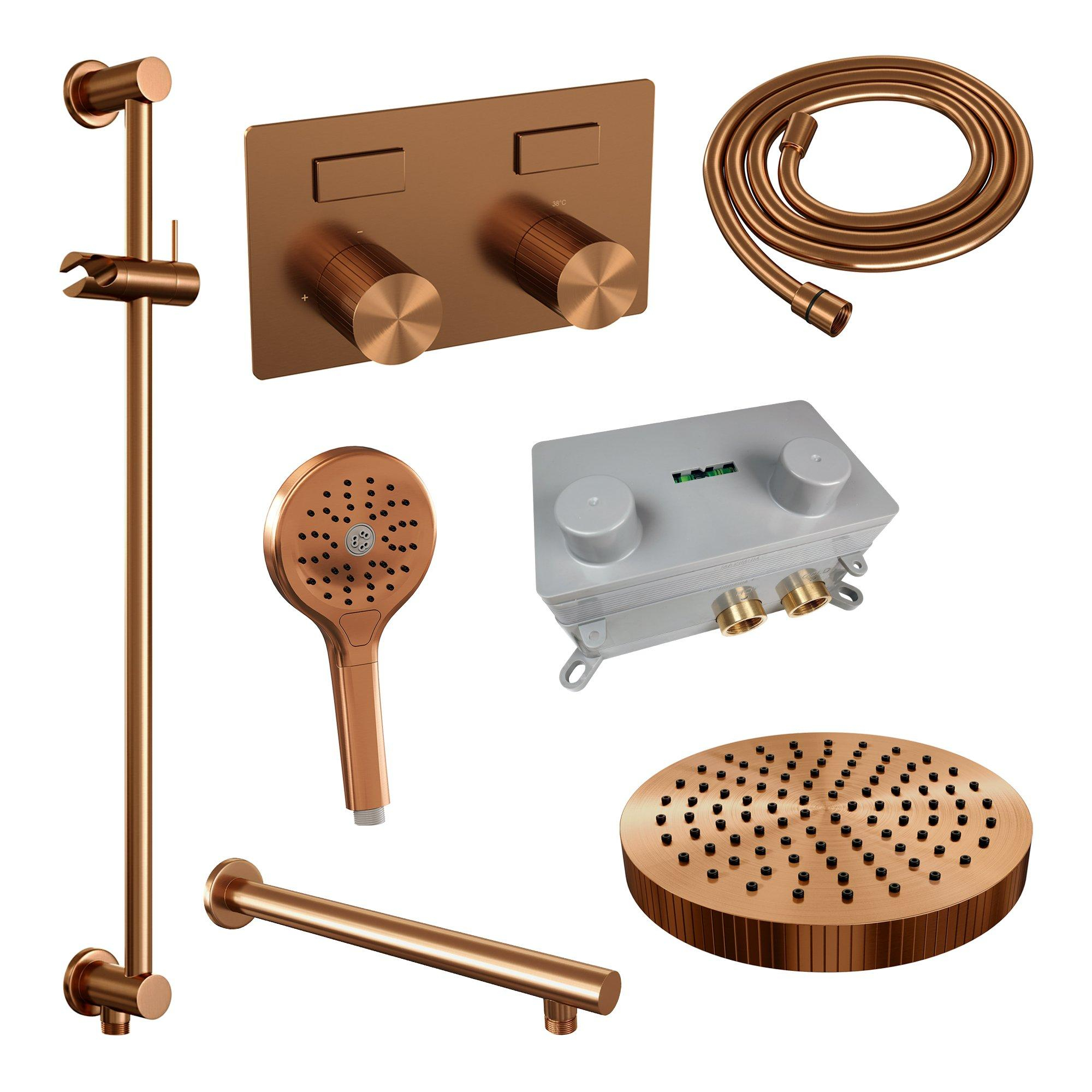 BRAUER Stripe Douche de tête thermostatique encastrée - boutons-poussoirs - pomme de douche 25cm - bras mural droit - douchette 3 positions - flexible de douche - barre coulissante intégrée - cuivre brossé PVD