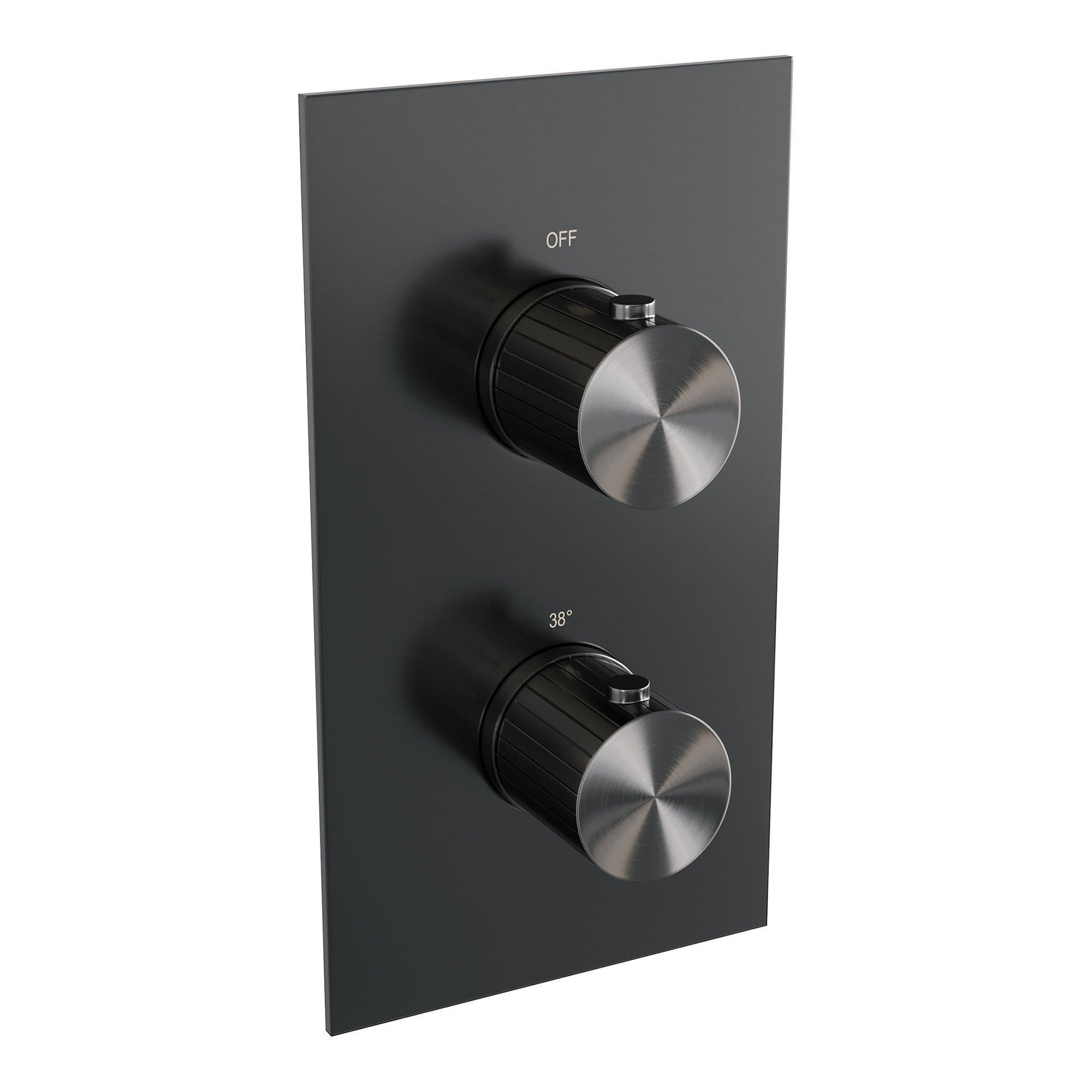 BRAUER Stripe Douche de pluie encastrée thermostatique - 3 voies - rectangulaire - pomme de douche 25 cm - bras mural courbé - douchette barre - flexible de douche - coude de raccordement mural - gunmetal brossé PVD