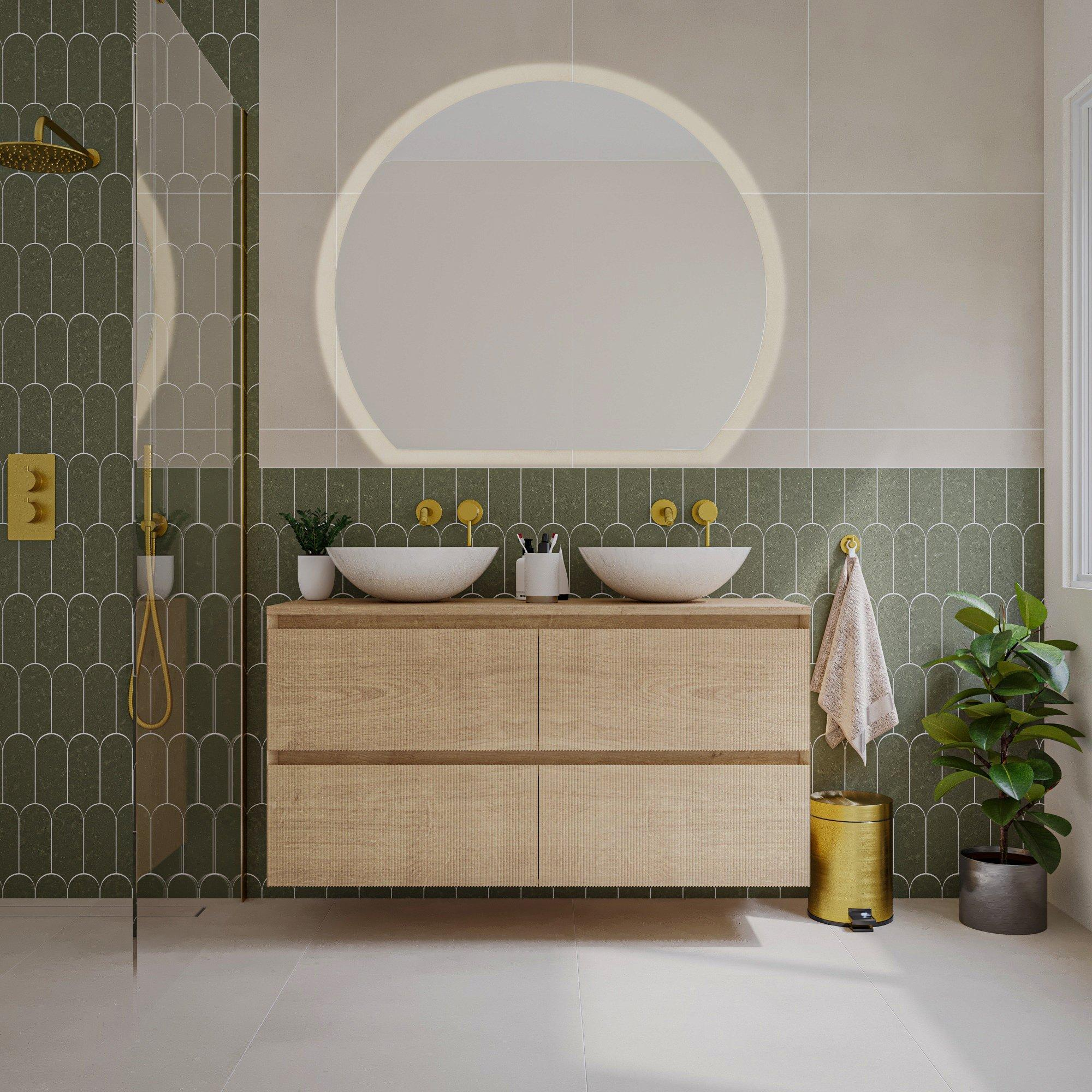 Saniclass Holz Atelier Badkamermeubelset - 120x45x60cm - topblad - zonder kraangaten - 2 lades - Eiken Natural