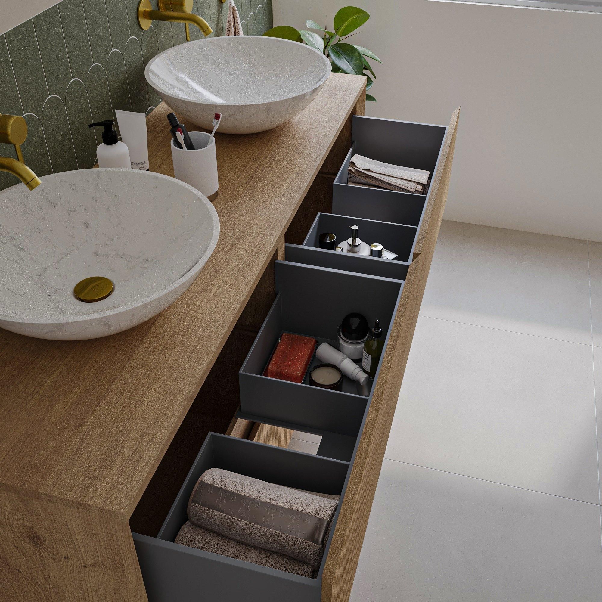 Saniclass Holz Atelier Badkamermeubelset - 140x45x60cm - topblad - zonder kraangaten - 4 lades - Eiken Natural