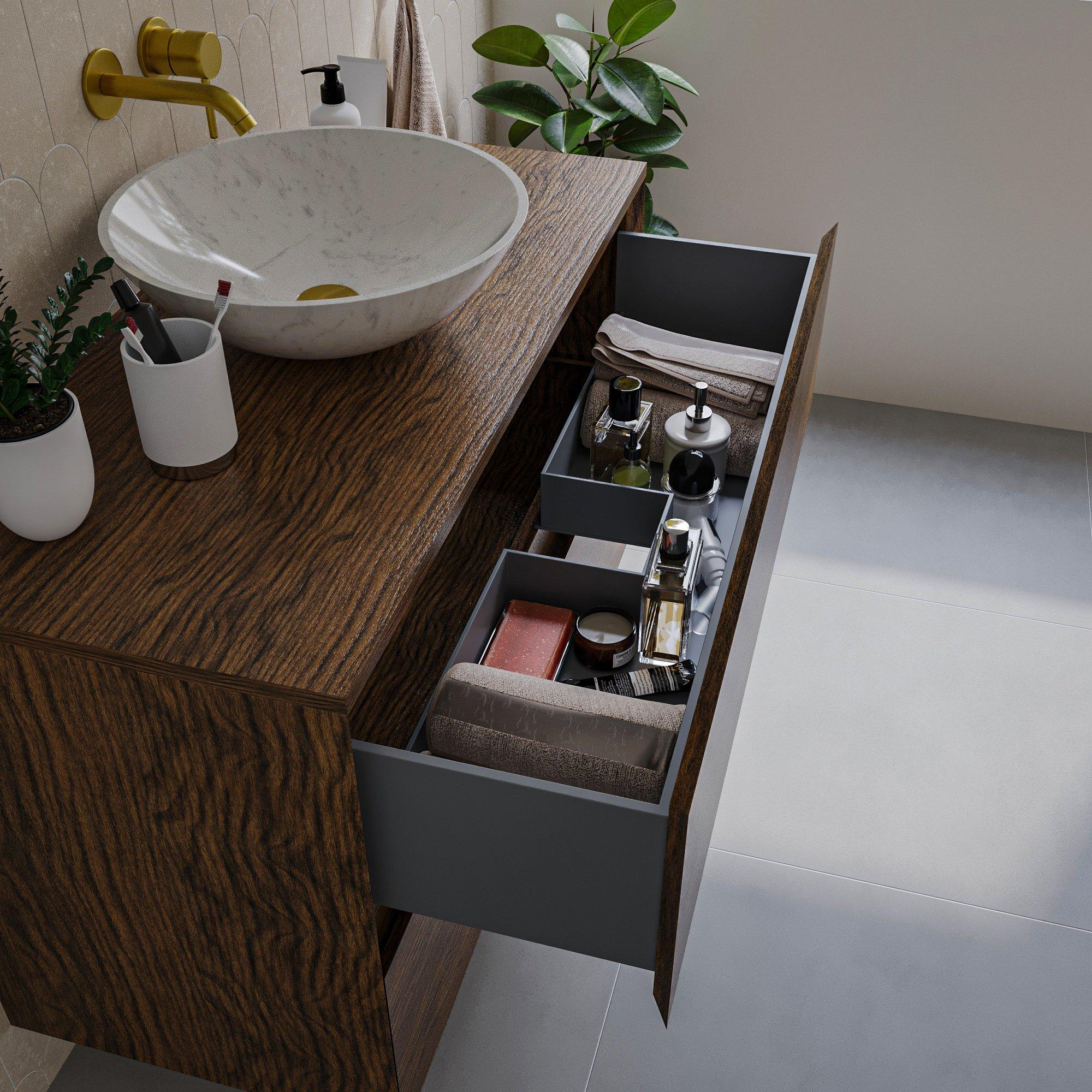 - 2 grands tiroirs avec système softclose pour une utilisation silencieuse