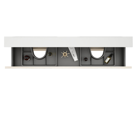 La commodité pratique est au cœur de ce meuble. Les deux grands tiroirs offrent suffisamment d’espace de rangement pour tous vos accessoires de salle de bains, vous permettant de tout garder bien rangé et à portée de main. Les tiroirs sans poignée s’ouvrent en douceur et se ferment silencieusement, contribuant à une atmosphère paisible. La vasque sans trous de robinet vous permet de choisir vous-même le robinet qui correspond le mieux à votre style et à vos besoins. Vous combinez ainsi fonctionnalité et liberté personnelle, exactement comme vous le souhaitez.