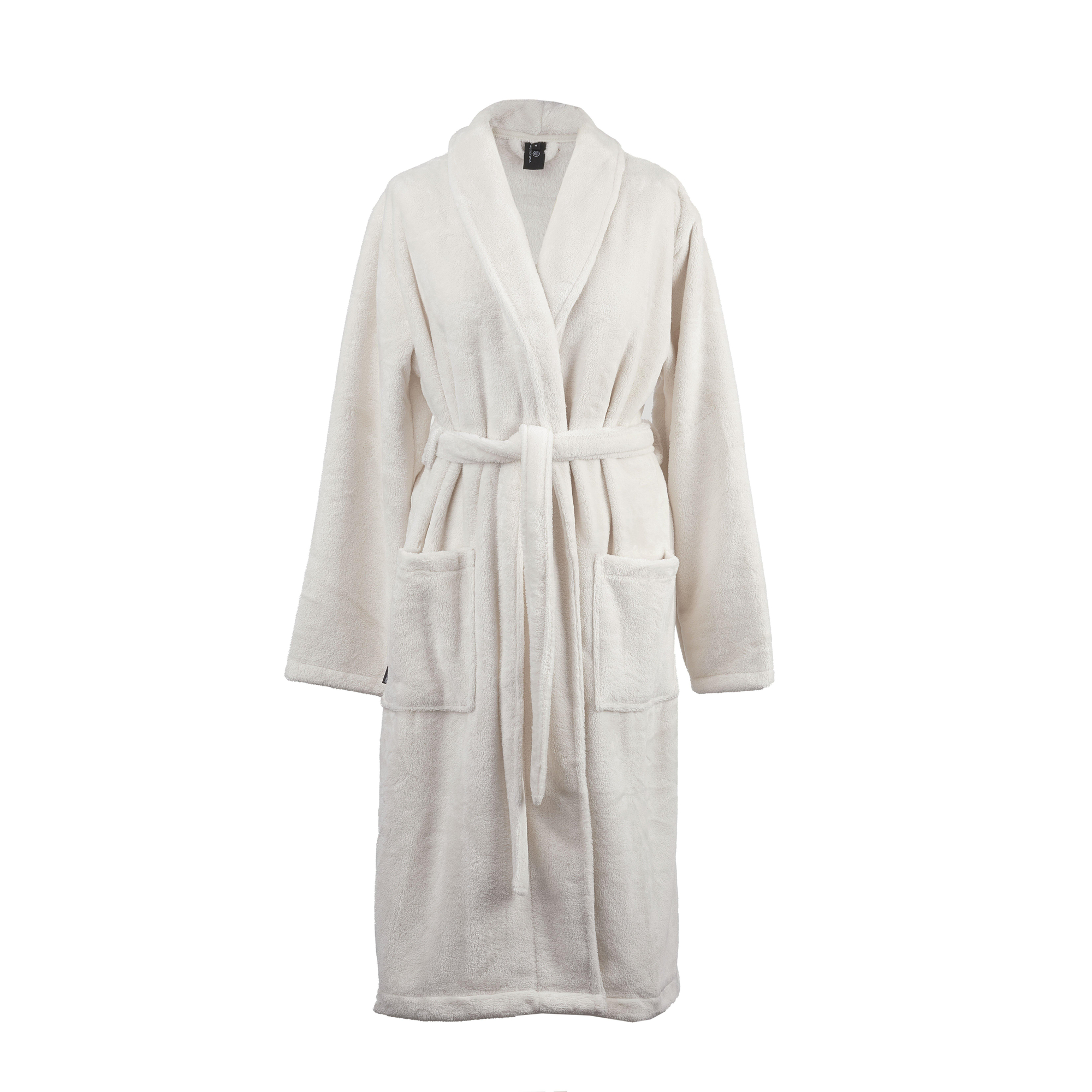 Avec sa couleur blanche fraîche et sa coupe intemporelle, ce peignoir dégage une pure élégance. Le design minimaliste fait que vous avez toujours une allure soignée, sans être trop voyant. Le peignoir s’ajuste parfaitement et possède une ceinture pratique qui vous permet d’adapter la coupe selon vos souhaits. Cela en fait un vêtement polyvalent, à la fois fonctionnel et à la mode. Vous ajoutez ainsi facilement une touche de classe à votre routine quotidienne, tout en profitant de la douceur du velours qui caractérise ce peignoir.
