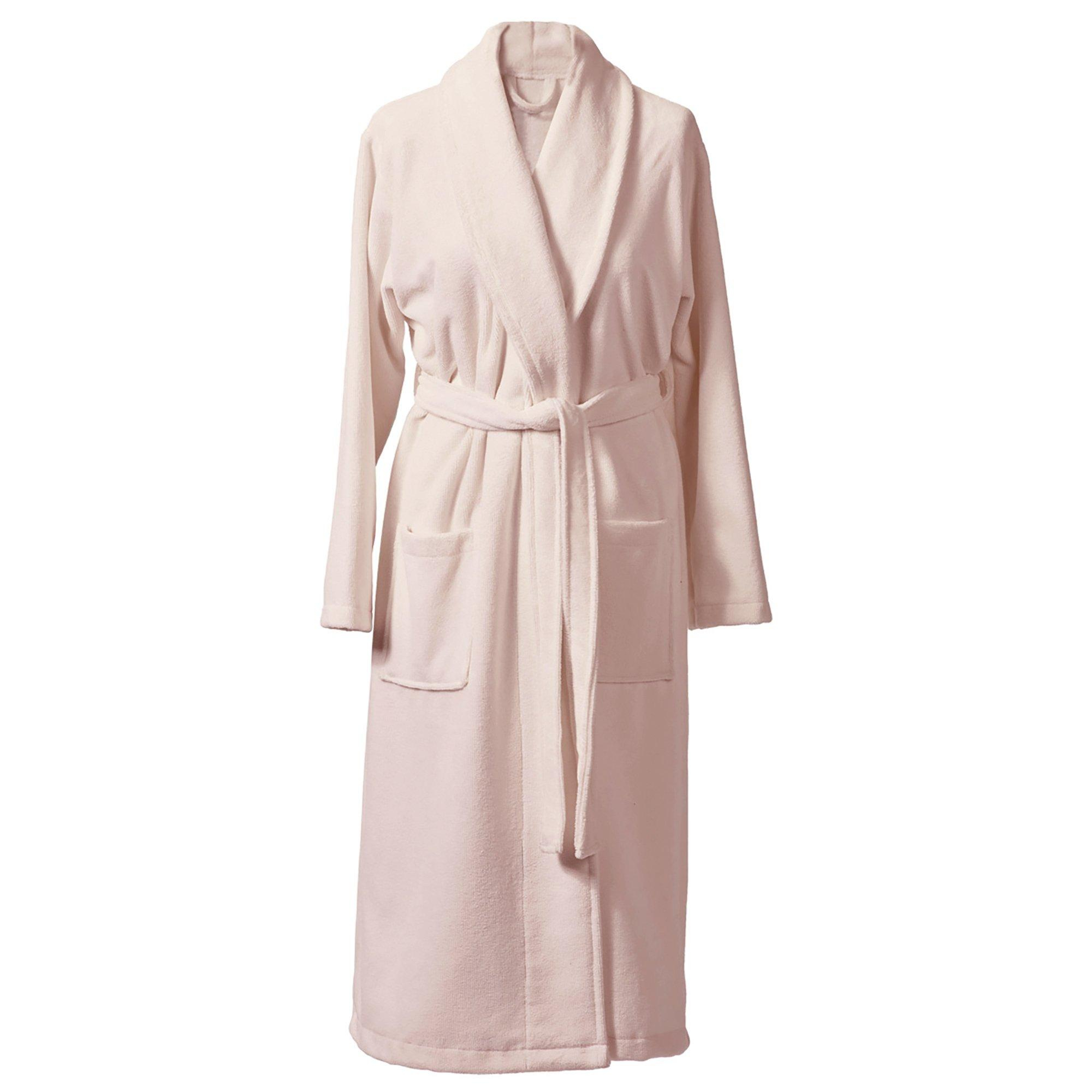 Avec sa couleur blush douce et son design intemporel, ce peignoir est un véritable accroche-regard. Le col châle classique et les poches profondes ajoutent non seulement une touche pratique, mais renforcent également l'apparence raffinée. Ce peignoir s'harmonise facilement avec différents détails de salle de bains et crée une ambiance chaleureuse et accueillante. Ainsi, vous commencez et terminez toujours votre journée avec style, avec un produit aussi beau que confortable.