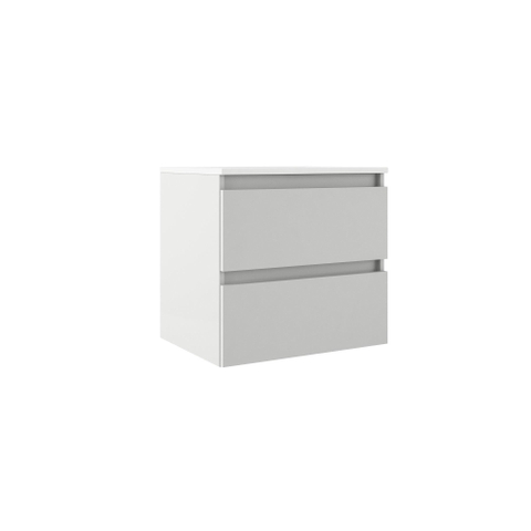 Adema Chacito Ensemble meuble de salle de bains - 60x40x55cm - peu profond - 2 tiroirs - sans poignées - lavabo blanc brillant - 1 trou de robinet - blanc mat