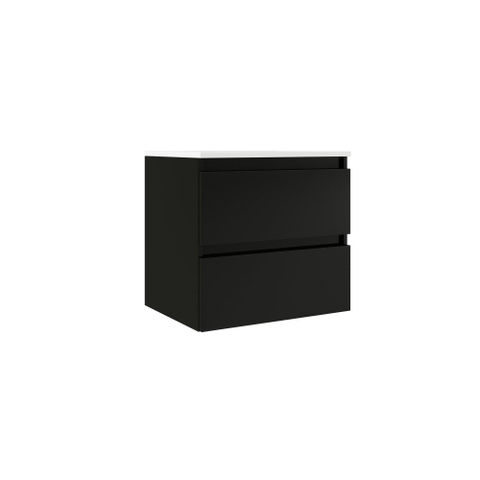 Adema Chacito Ensemble meuble de salle de bains - 60x40x55cm - peu profond - 2 tiroirs - sans poignées - vasque blanc brillant - 1 trou de robinet - noir mat