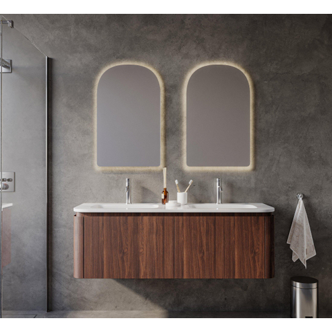 La finition châtaignier confère au meuble une apparence naturelle et chaleureuse qui donne à votre salle de bains une atmosphère conviviale. Les coins arrondis adoucissent le design épuré et rendent le meuble accueillant et sympathique. Cela en fait un accord parfait pour les salles de bains modernes comme classiques. L’effet bois ajoute du caractère sans dominer, ce qui permet de combiner facilement le meuble avec différentes couleurs et matériaux. Vous créez ainsi une salle de bains à la fois élégante et personnelle.
