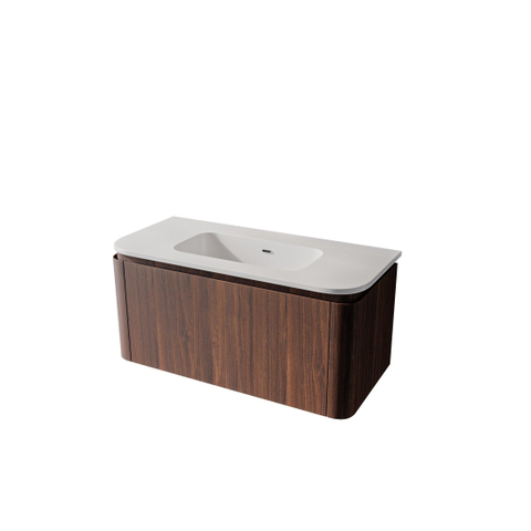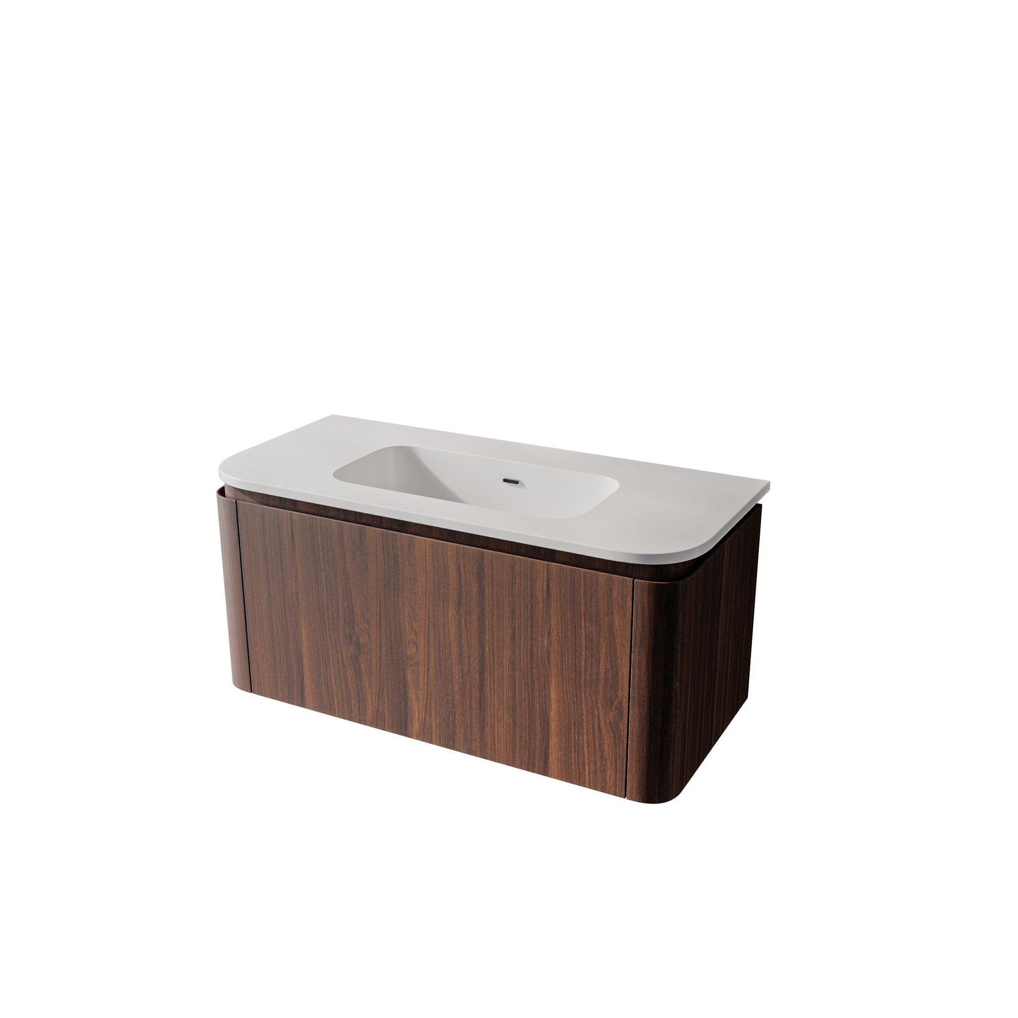 Saniclass Terra Ensemble meuble de salle de bains - 100cm - 2 tiroirs - coins arrondis - 1 vasque - sans trou de robinet - châtaignier (noyer)