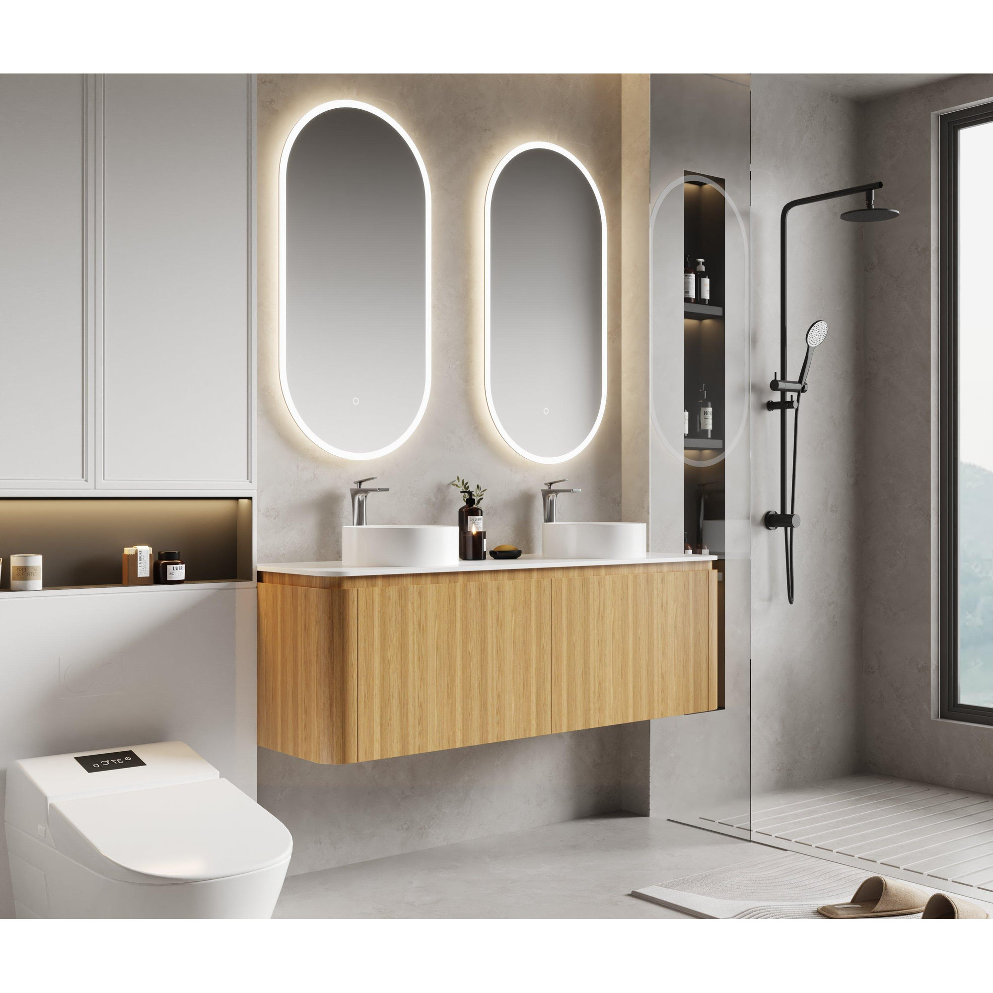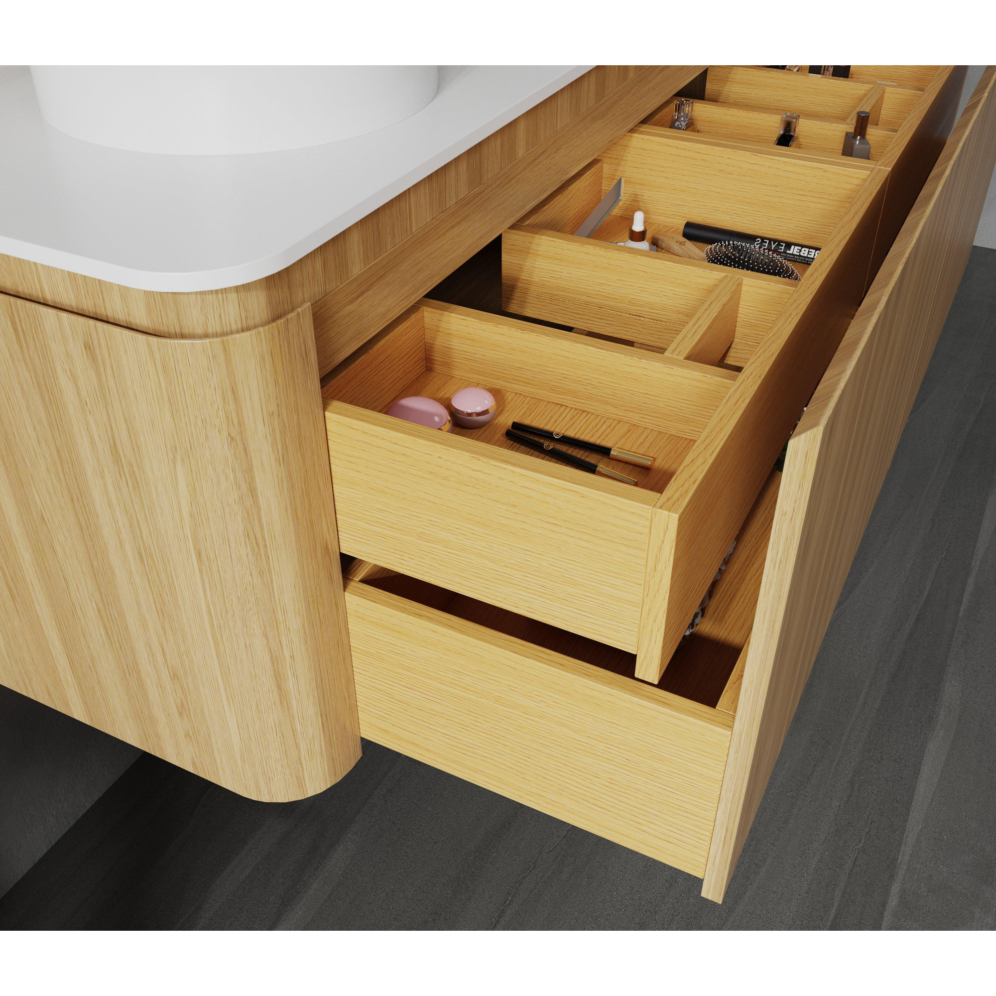 La finition sandwood en chêne clair dégage une chaleur naturelle qui rend votre salle de bains immédiatement plus accueillante. Les coins arrondis apportent un look doux et raffiné qui convient aussi bien au style moderne que classique. Ce meuble est conçu pour ajouter un style subtil mais marquant à votre intérieur. Il s’accorde aisément avec divers styles et matériaux de salle de bains, ce qui en fait un choix polyvalent qui donne une mise à jour élégante à votre intérieur sans le dominer.