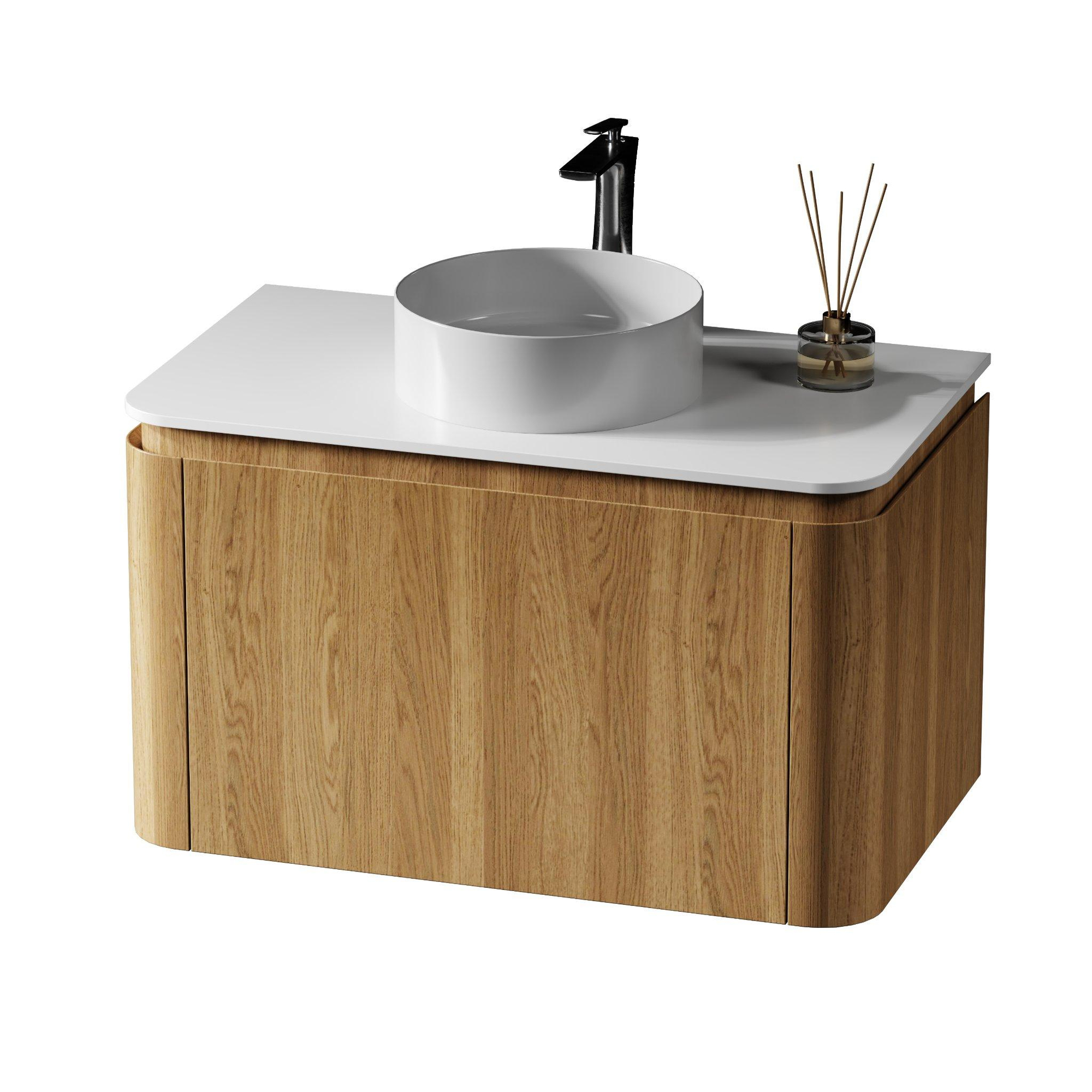 Saniclass Terra Ensemble meuble de salle de bains - 80cm - 2 tiroirs - coins arrondis - plan de toilette - sandwood (chêne clair)