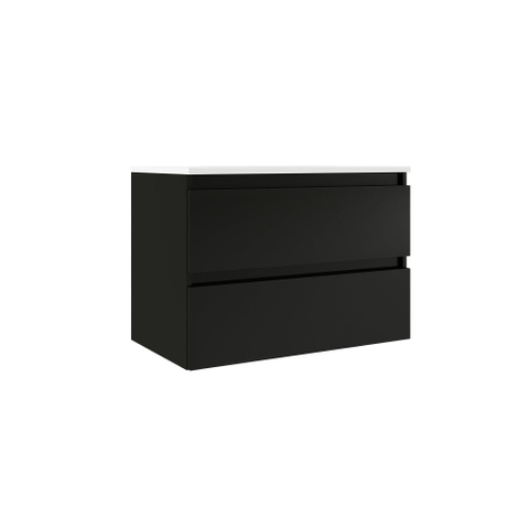 Adema Chacito Ensemble meuble de salle de bains - 100x40x55cm - peu profond - 2 tiroirs - sans poignée - lavabo blanc brillant - 1 trou de robinet - noir mat