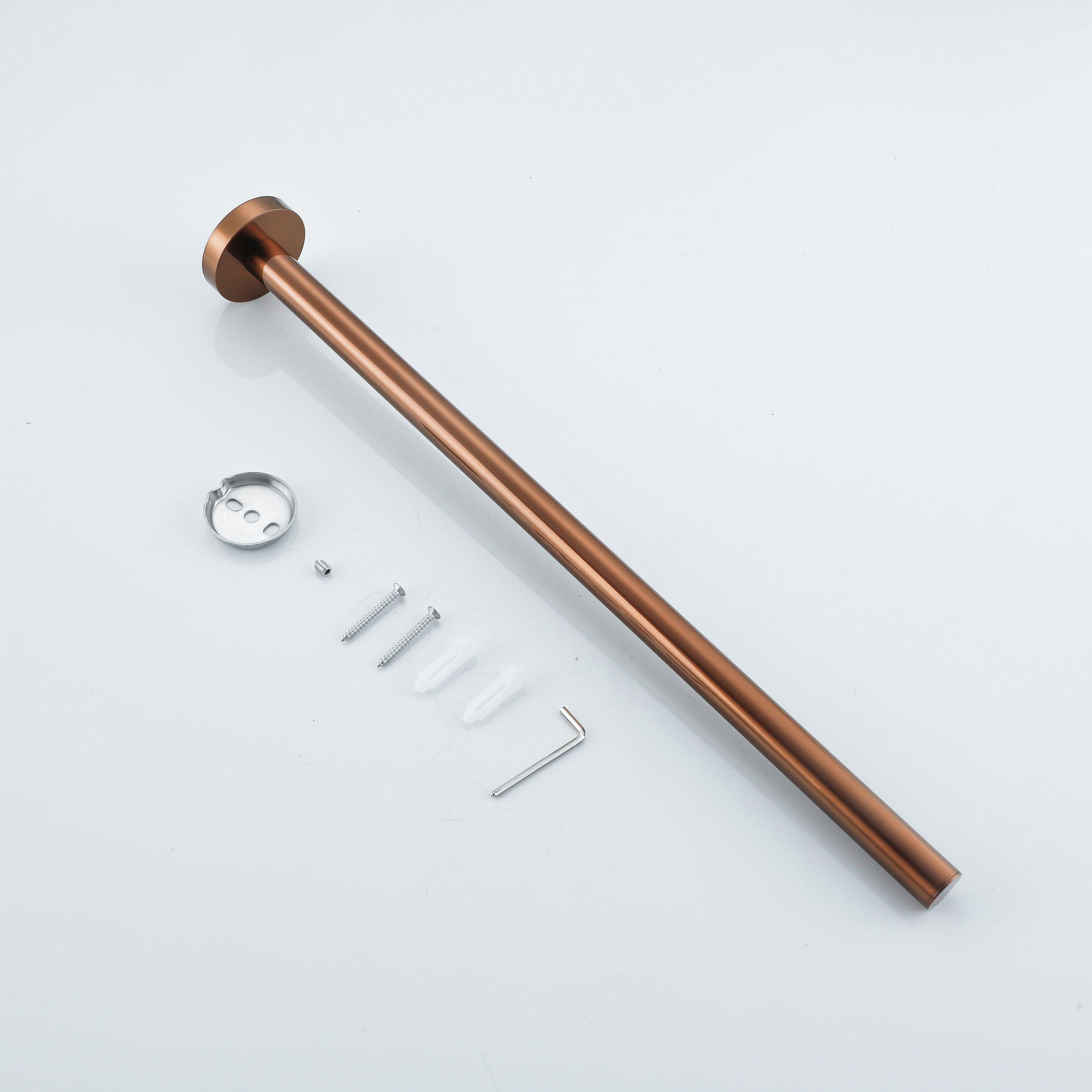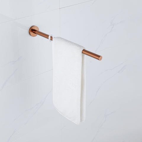 Ce porte-serviettes est un complément parfait pour toute salle de bains où le style et la fonctionnalité se rejoignent. Grâce à son design fixe de 40 cm, il offre suffisamment d’espace pour une serviette, idéal pour les petites salles de bains, les toilettes invités ou comme porte-serviettes supplémentaire à côté de votre porte-serviettes principal. La finition chaude en cuivre brossé apporte une apparence luxueuse et intemporelle qui s’accorde aussi bien avec les intérieurs de salle de bains classiques que modernes. Que vous prévoyiez une rénovation complète ou que vous souhaitiez simplement ajouter une touche raffinée, ce support combine durabilité et élégance et rend la suspension de vos serviettes simple et ordonnée.