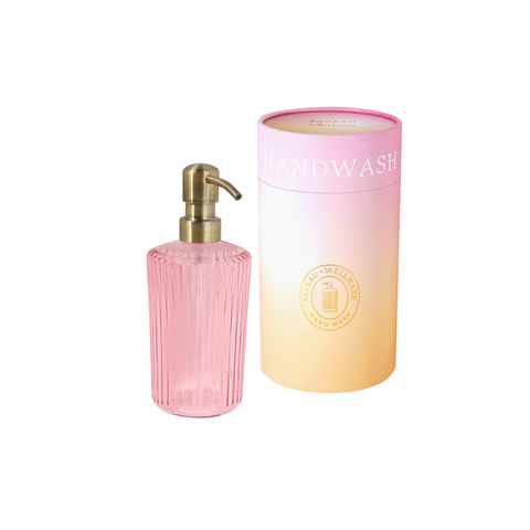 Wellmark x Paveau Savon pour les mains - 350 ml - pompe en laiton - fresh linen - verre rose