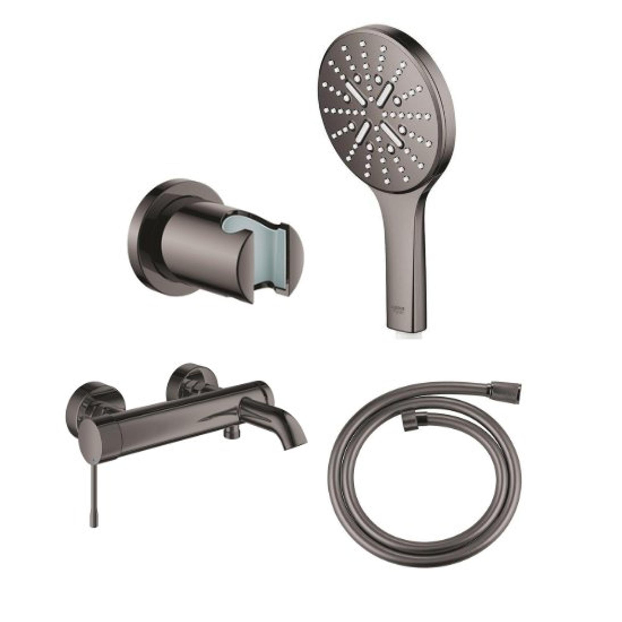 GROHE Essence New mitigeur bain/douche avec ensemble douchette à main 3 jets et flexible hard graphite