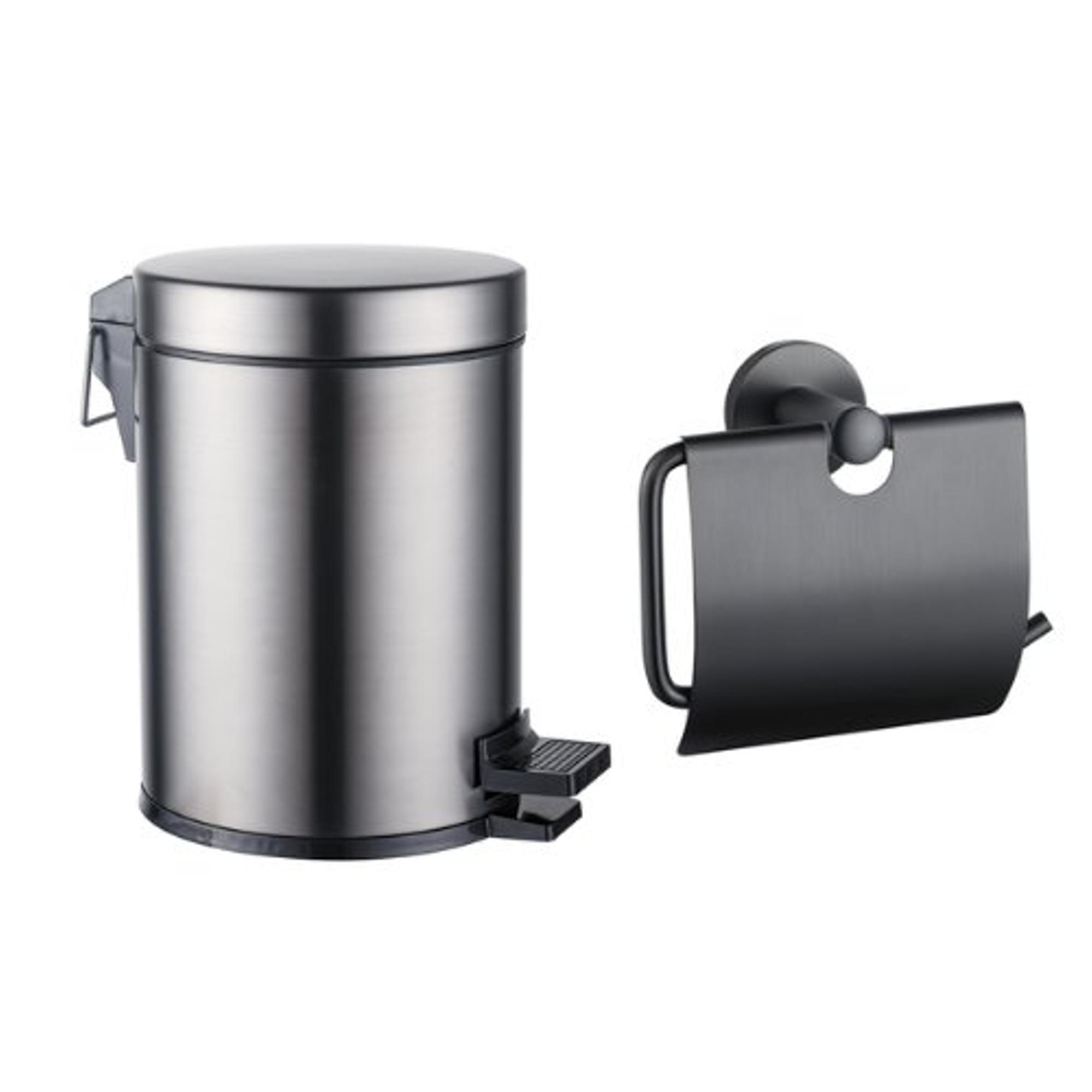 Fortifura Calvi ensemble d'accessoires pour toilettes - porte-rouleau - avec couvercle - poubelle à pédale - 5 litres - gunmetal brossé