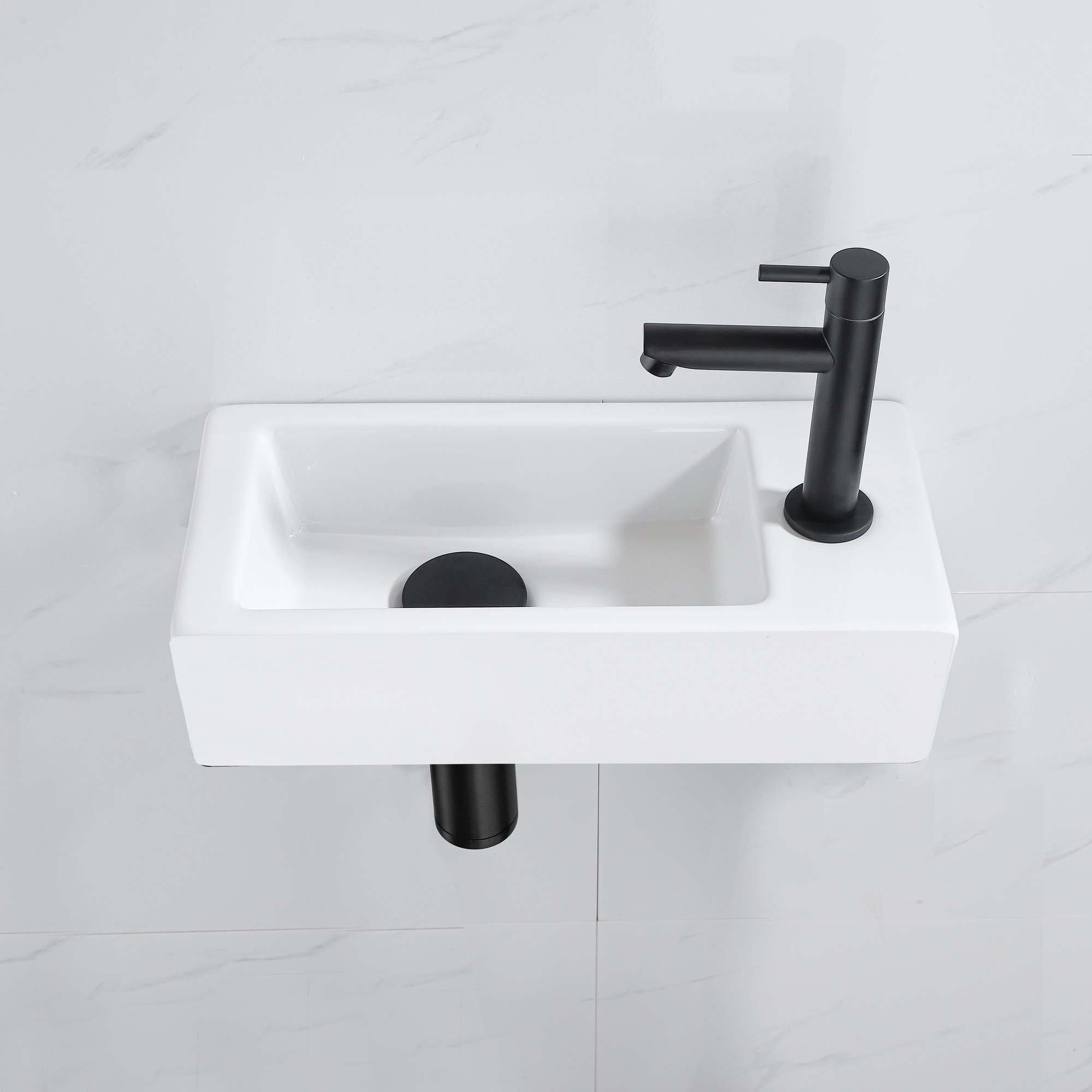 37.5x18.5x9cm - céramique - trou de robinet droit - robinet lave-mains noir mat - bonde de vidage - siphon compact - Mat blanc.