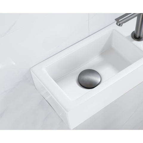 Le QeramiQ Fuente Kit lave-mains dégage élégance et style avec sa finition blanche mate et ses lignes épurées. Le matériau céramique ajoute une touche de luxe à l'espace, tandis que le trou de robinet à droite assure une disposition pratique et fonctionnelle. Le robinet lave-mains en gunmetal ajoute une touche contemporaine à l'ensemble, faisant de ce produit un véritable point focal dans chaque salle de bain.