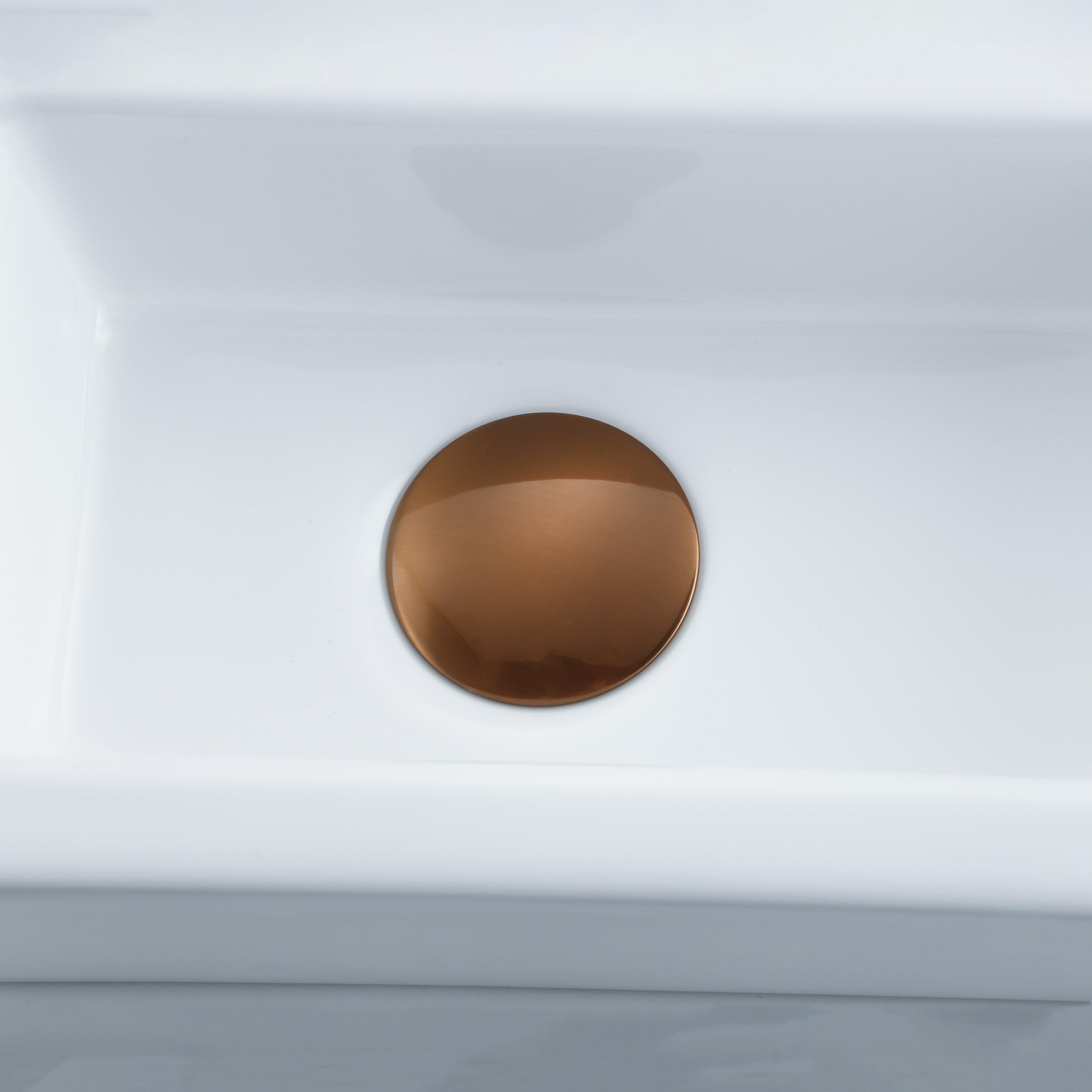 FugaFlow Efficiente Pietra Ensemble de fontaine - 37,5x18,5x9cm - céramique - trou de robinet à droite - robinet de fontaine en cuivre brossé - bouchon de vidange - siphon abaissé - Blanc mat