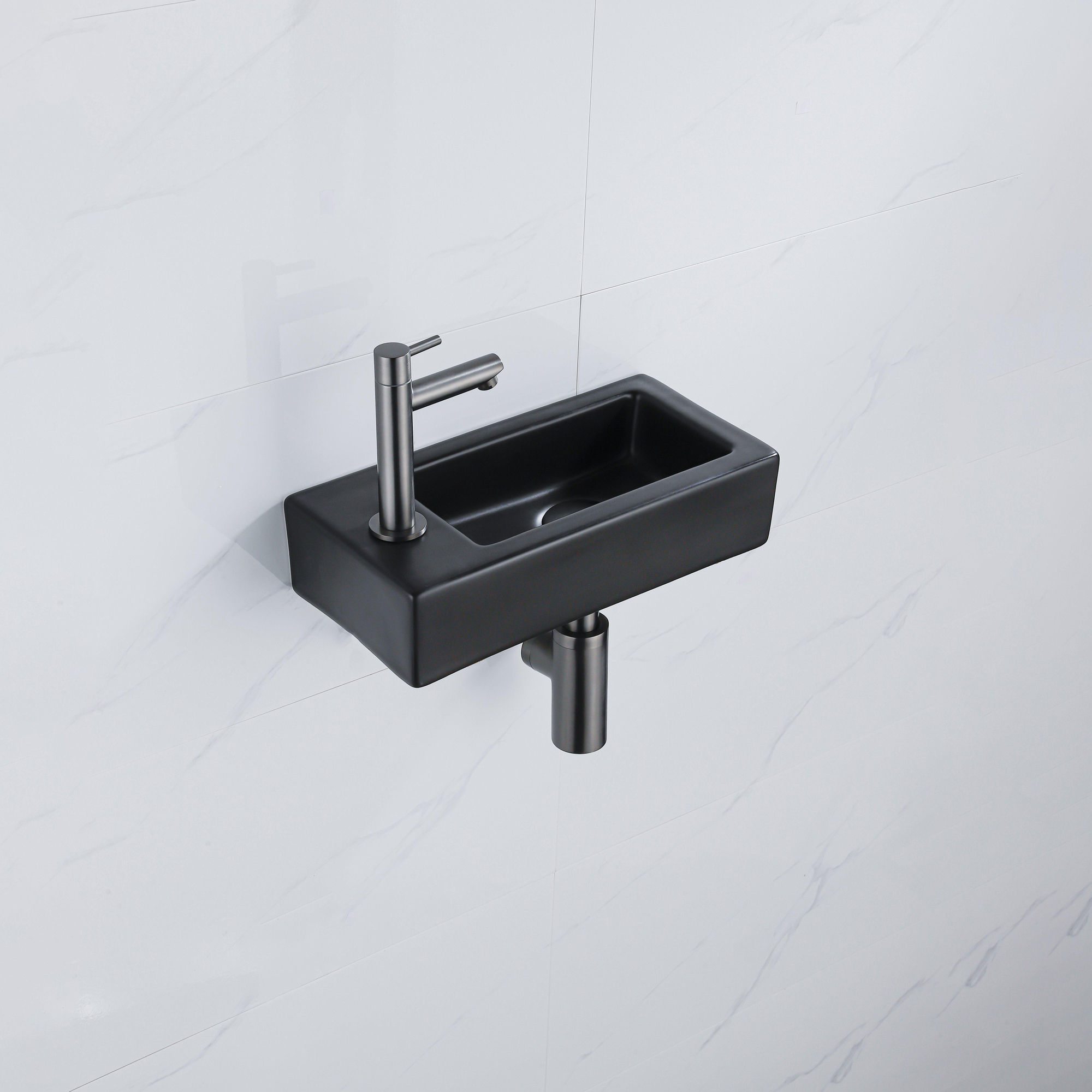 L'ensemble de lave-mains QeramiQ Fuente est un ajout pratique à toute salle de bain. Avec ses dimensions compactes de 37.5x18.5x9cm, cet ensemble de lave-mains s'intègre parfaitement dans les petits espaces, comme un WC ou une salle de bain compacte. Le trou de robinet à gauche permet une installation facile et le robinet lave-mains gunmetal ajoute une touche d'élégance à l'ensemble. La finition noire mate donne un aspect moderne à l'ensemble de lave-mains, en faisant un ajout stylé à votre intérieur de salle de bain.