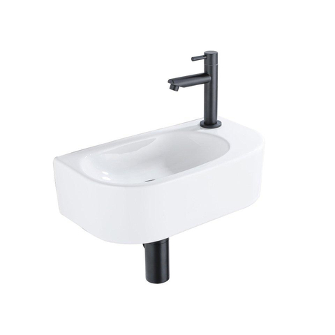 Fugaflow Efficiente Pietra Ensemble lave-mains - 40x21.5x12cm - droite - lisse - demi-ronde - 1 trou de robinet - céramique - robinet lave-mains noir mat - bonde - siphon bas - blanc brillant
