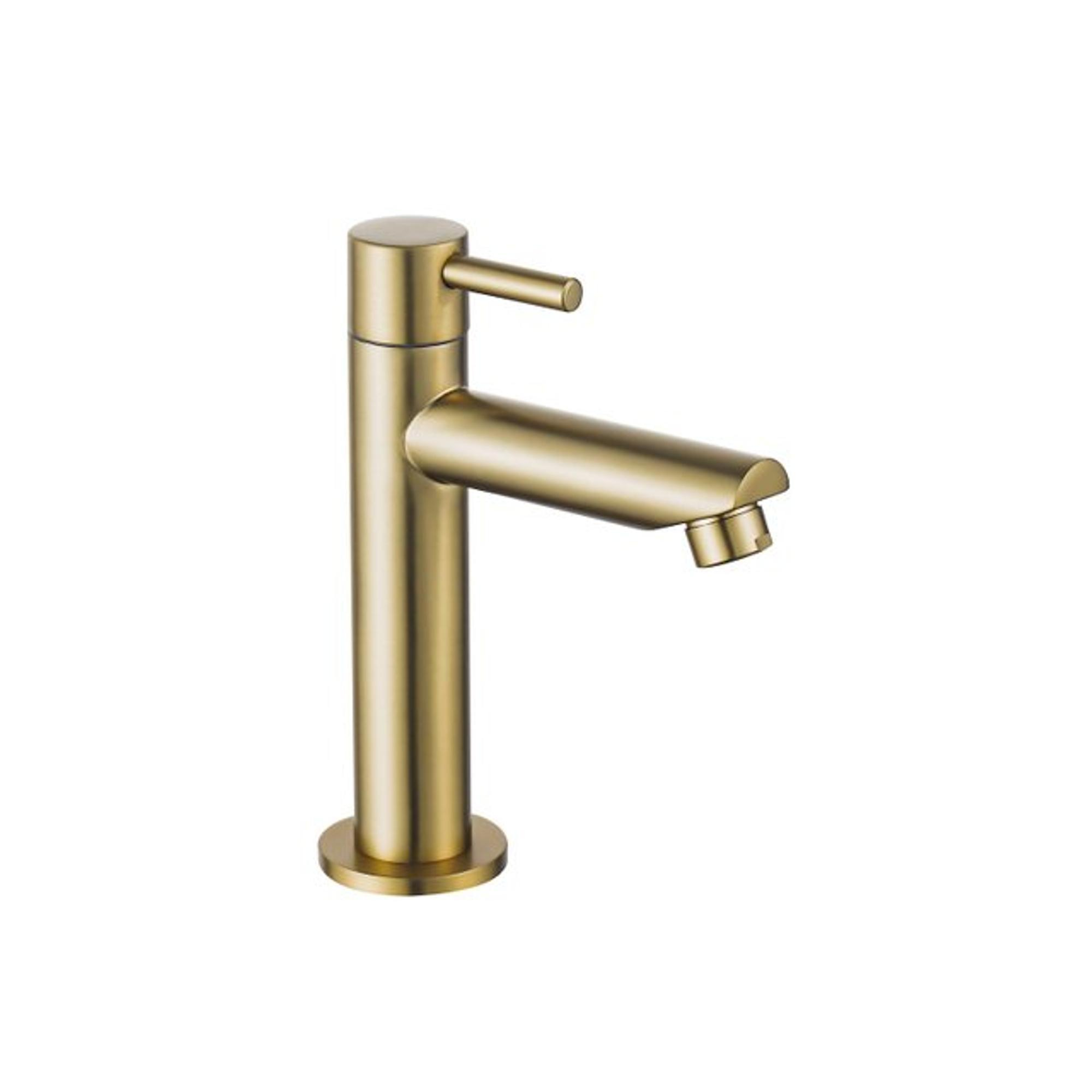 Fugaflow Efficiente Pietra Ensemble lavabo pour WC - 40x21.5x12cm - droite - lisse - semi‑rond - 1 trou de robinet - céramique - robinet de lave-mains laiton brossé - bonde - siphon réduit - blanc brillant