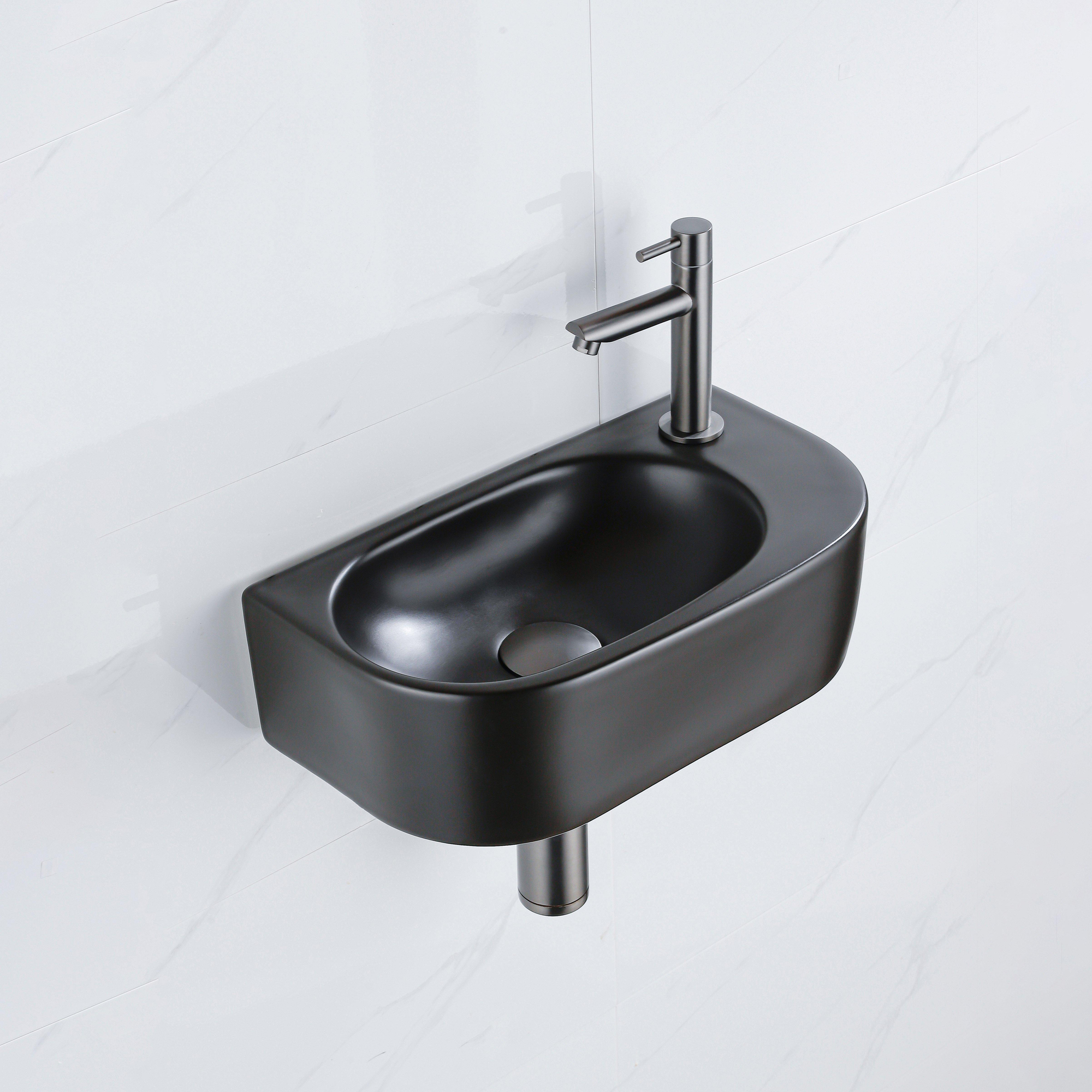 Fugaflow Efficiente Pietra Ensemble lave-mains - 40x21.5x12cm - droit - lisse - semi-rond - 1 trou de robinet - céramique - robinet de lave-mains gunmetal - bonde - siphon abaissé - noir mat