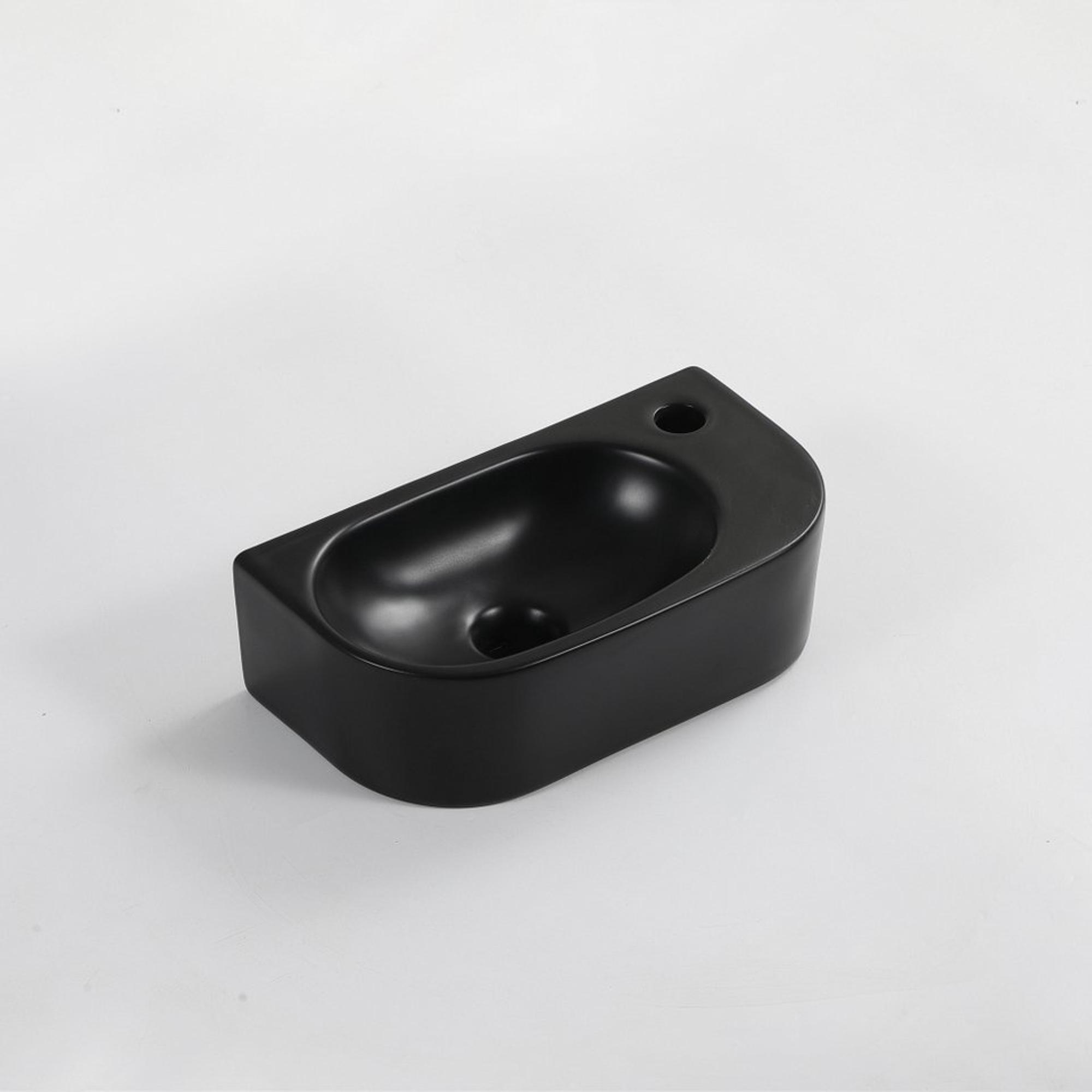 Fugaflow Efficiente Pietra Ensemble lave-mains – 40 x 21,5 x 12 cm – droite – lisse – demi-rond – 1 trou pour robinet – céramique – robinet pour lave-mains blanc mat – bonde d’évacuation – siphon extra-plat – noir mat