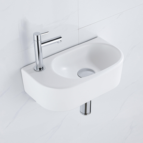 Fugaflow Efficiente Pietra Ensemble pour lave-mains - 40x21.5x12cm - gauche - lisse - semi-circulaire - 1 trou de robinet - céramique - robinet lave-mains chromé - bonde - siphon abaissé - blanc mat
