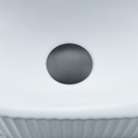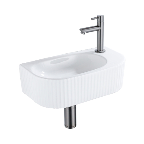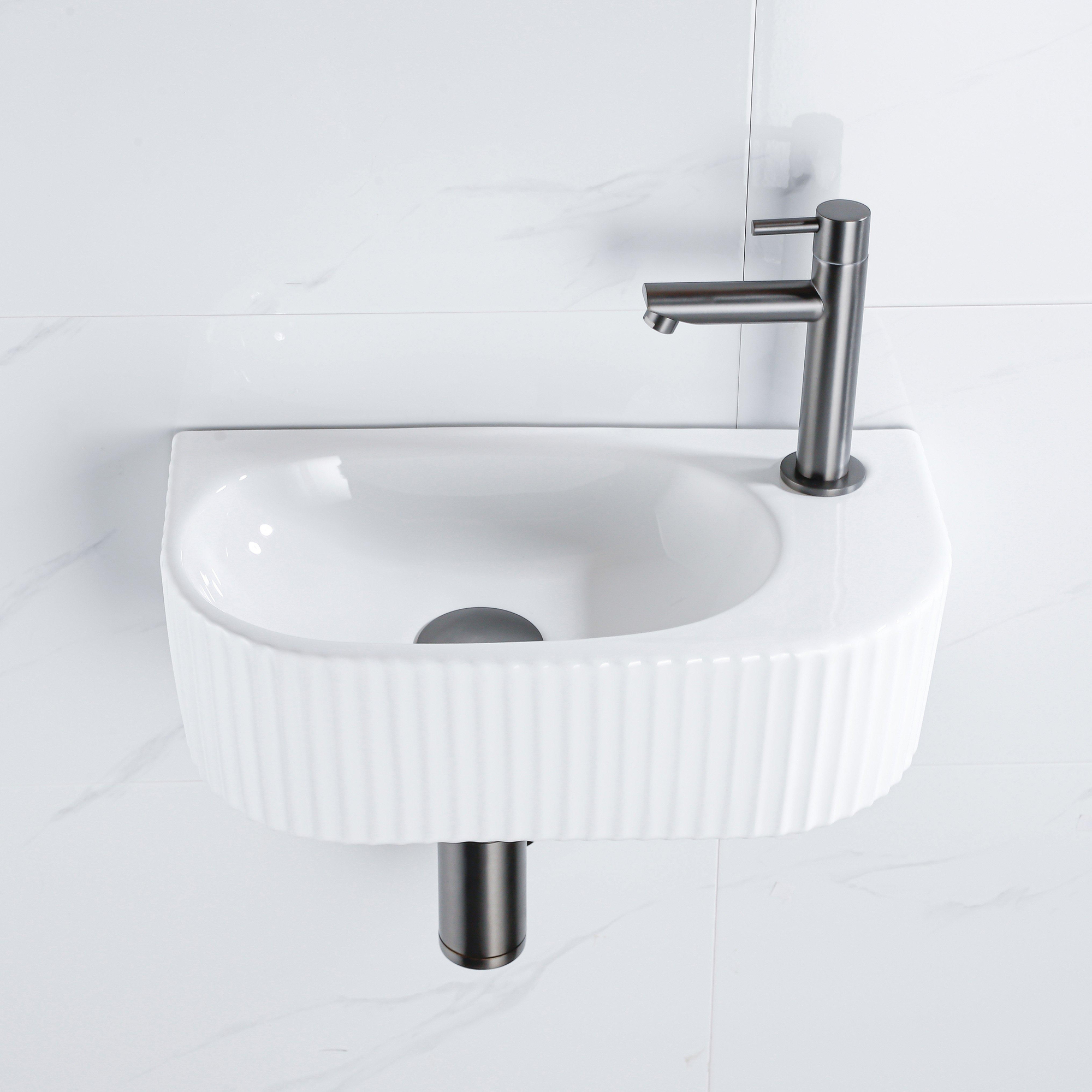 Fugaflow Efficiente Ensemble Fontaine Pietra - 40x21,5x12 cm - droite - rainurée - demi-ronde - 1 trou de robinet - céramique - robinet de fontaine gunmetal - bouchon de vidange - siphon abaissé - blanc brillant
