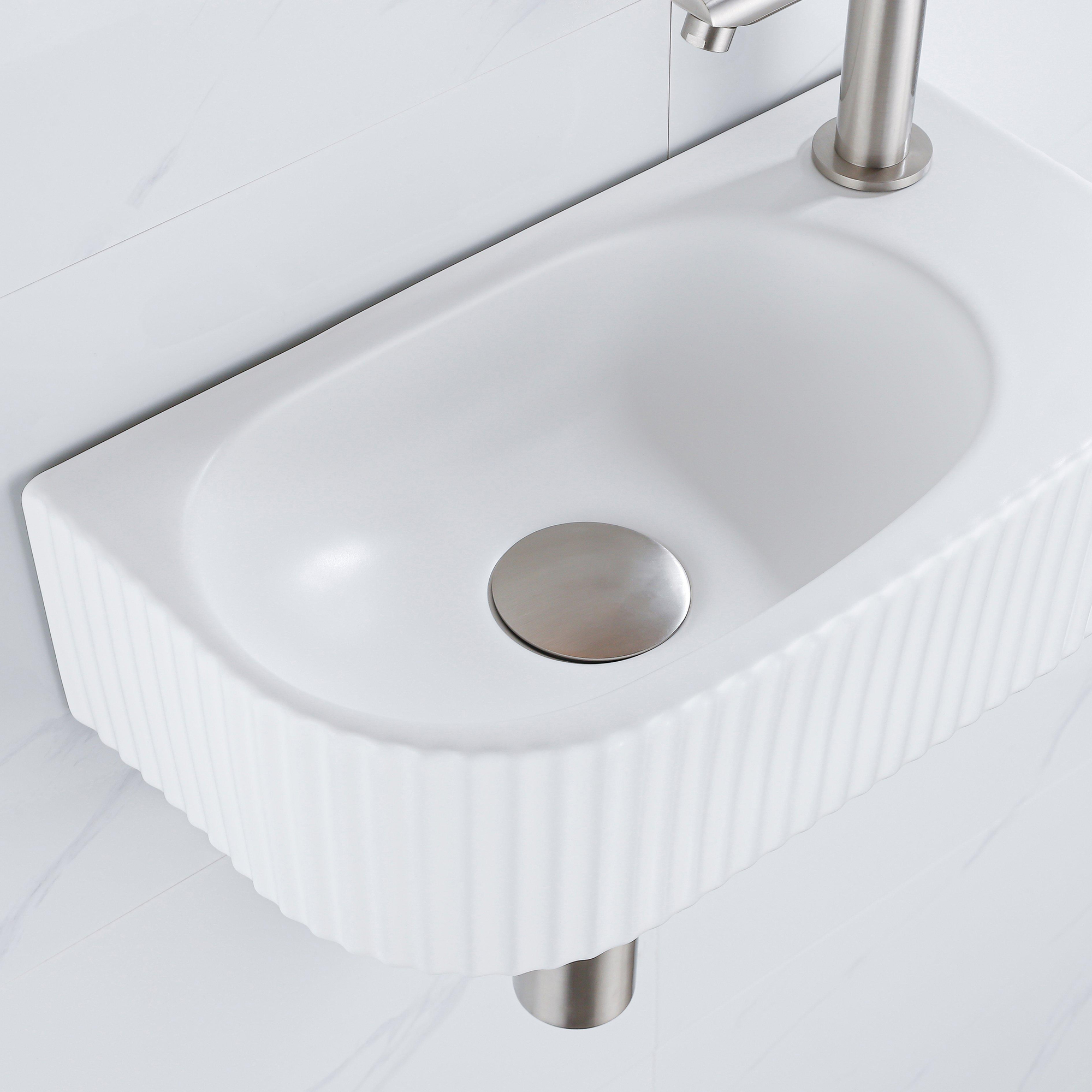 Fugaflow Efficiente Pietra ensemble de fontaine - 40 x 21,5 x 12 cm - droite - rainuré - demi-rond - 1 trou de robinet - céramique - robinet de fontaine en acier inoxydable brossé - bonde d’évacuation - siphon abaissé - blanc mat