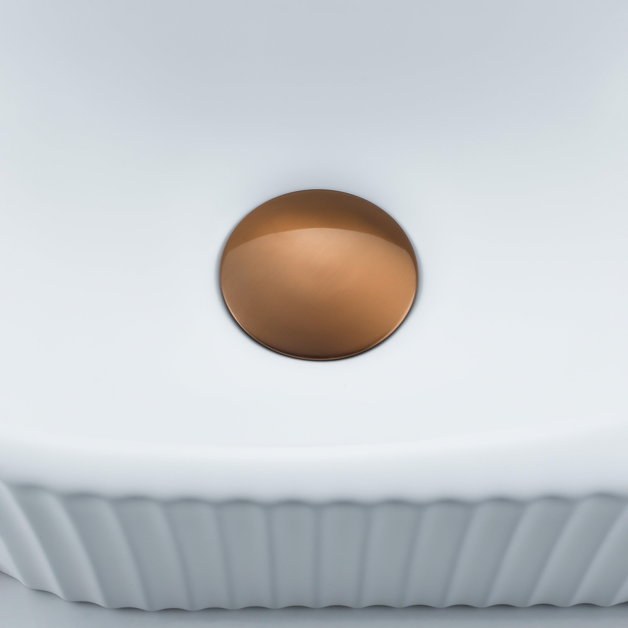 Fugaflow Efficiente Pietra Ensemble de fontaine - 40x21,5x12cm - droite - rainuré - demi-ronde - 1 trou de robinet - céramique - robinet de fontaine cuivre brossé - bouchon de vidange - siphon abaissé - blanc mat