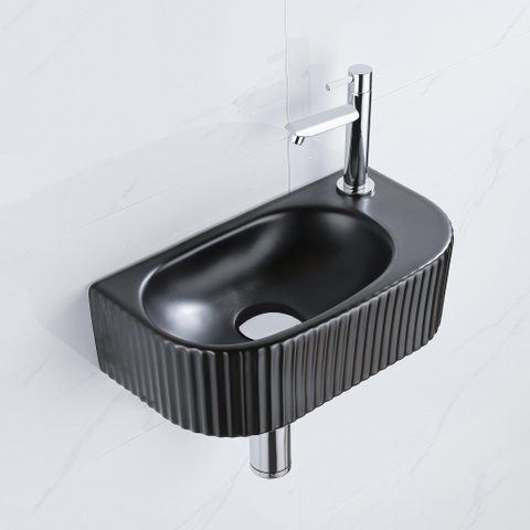 Fugaflow Efficiente Pietra Ensemble lave-mains - 40x21.5x12cm - droit - rainuré - semi-circulaire - 1 trou de robinet - céramique - robinet de lave-mains chrome - bonde - siphon abaissé - noir mat