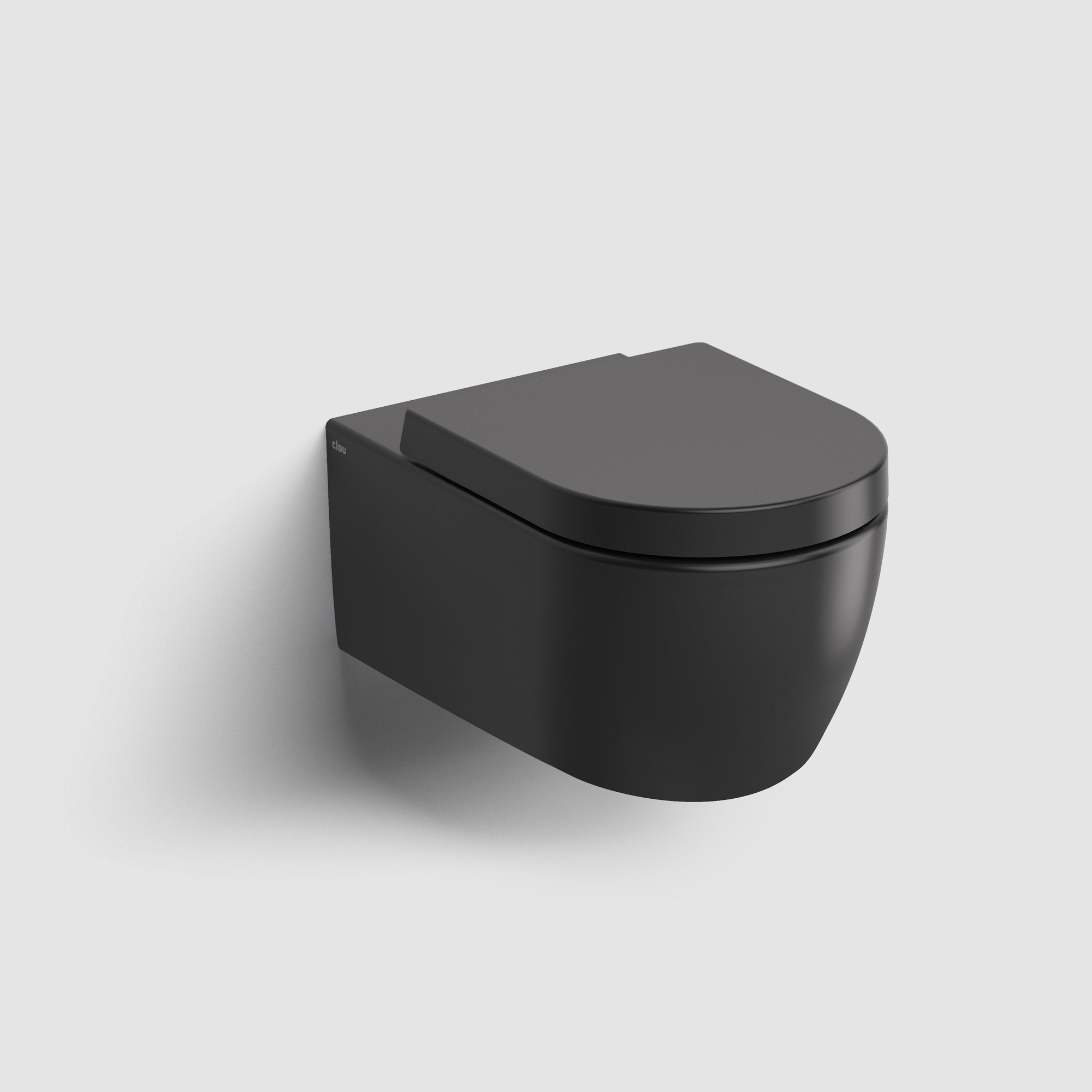 - WC suspendu moderne en noir mat, parfait pour des toilettes ou une salle de bains luxueuses et contemporaines.
