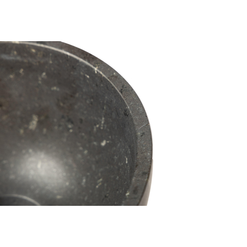 Cette vasque est un exemple de style et de raffinement. La pierre naturelle foncée a un aspect naturel et mat qui ajoute une touche subtile de luxe sans dominer. La forme ronde crée des lignes douces et un équilibre harmonieux dans votre intérieur de salle de bains. Ainsi, la vasque s'intègre parfaitement dans les salles de bains modernes comme classiques. Avec ce design, vous créez une atmosphère apaisante qui invite à la détente. De plus, le caractère unique de la pierre naturelle fait que chaque vasque est différente, ce qui donne à votre salle de bains une touche exclusive.