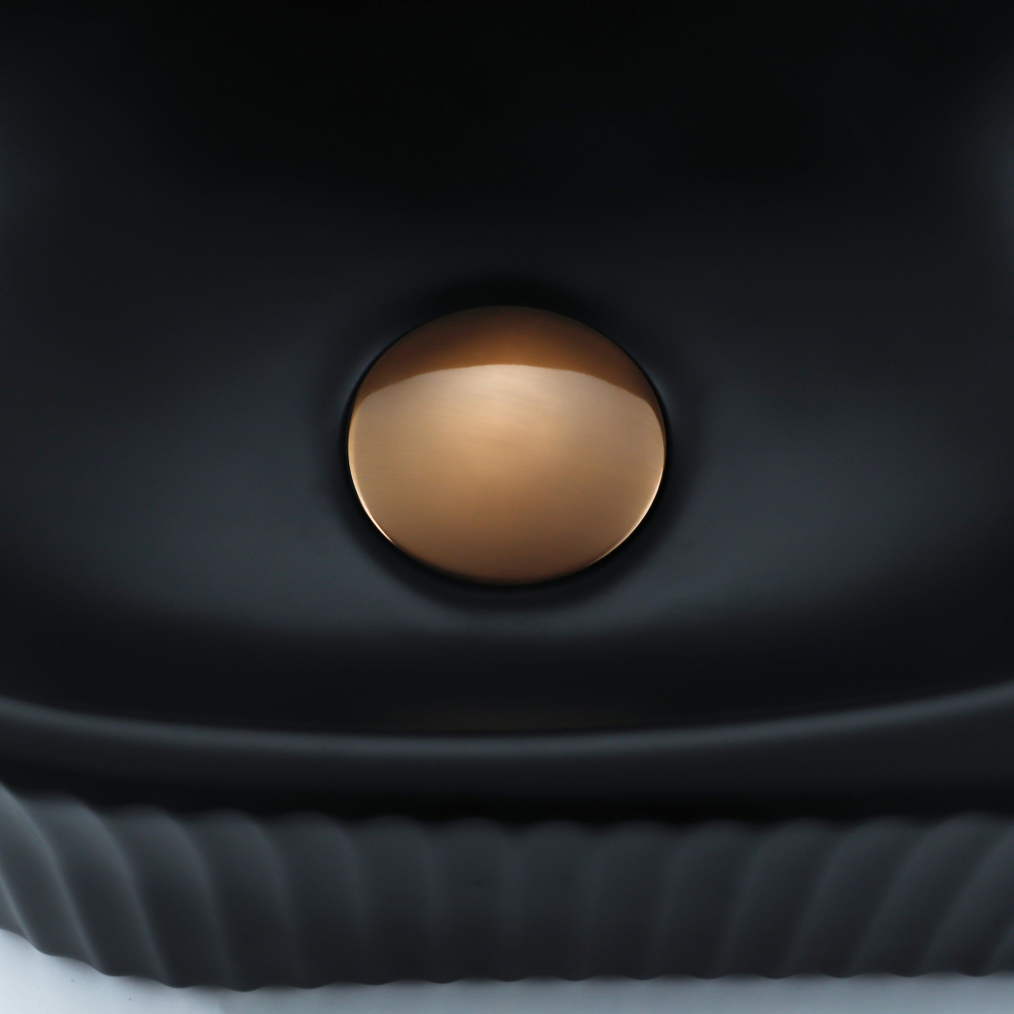 Fugaflow Efficiente Pietra Ensemble fontaine - 40x21,5x12cm - droite - rainuré - demi-ronde - 1 trou de robinet - céramique - robinet de fontaine cuivre brossé - bouchon de vidange - siphon abaissé - noir mat