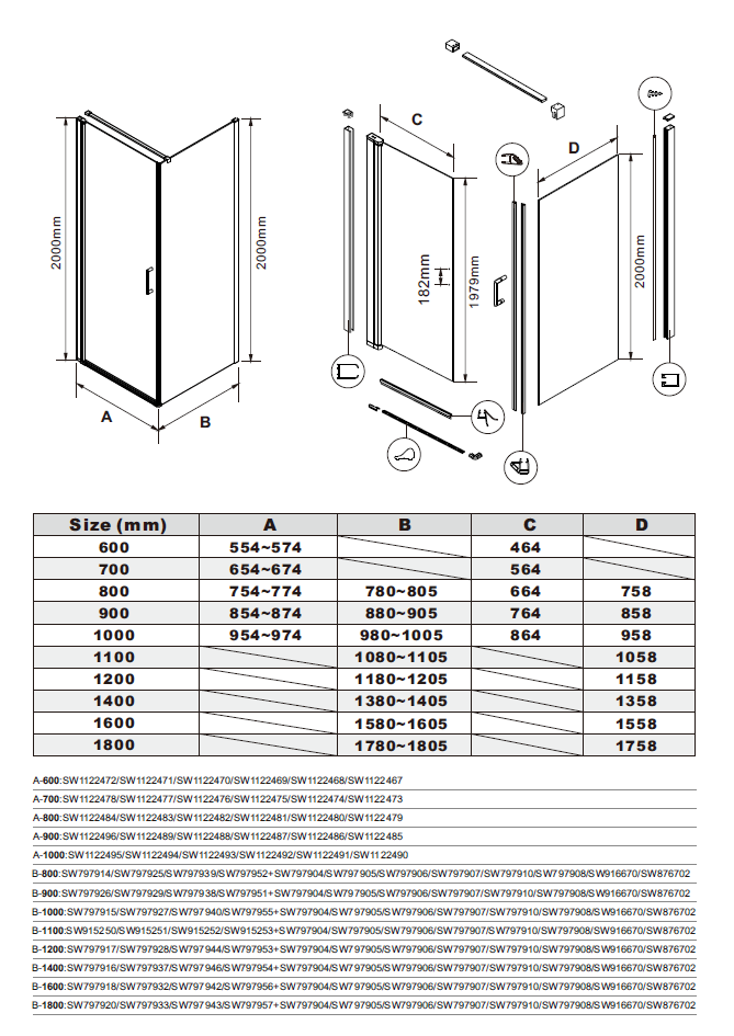 | Largeur minimale paroi porte de douche | 160.5 cm |