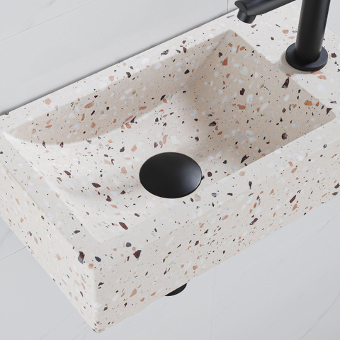 Saniclass Fuente Ensemble fontaine - 40x22x10cm - trou de robinet à droite - robinet fontaine noir mat - bouchon de vidange - siphon abaissé - beige mat