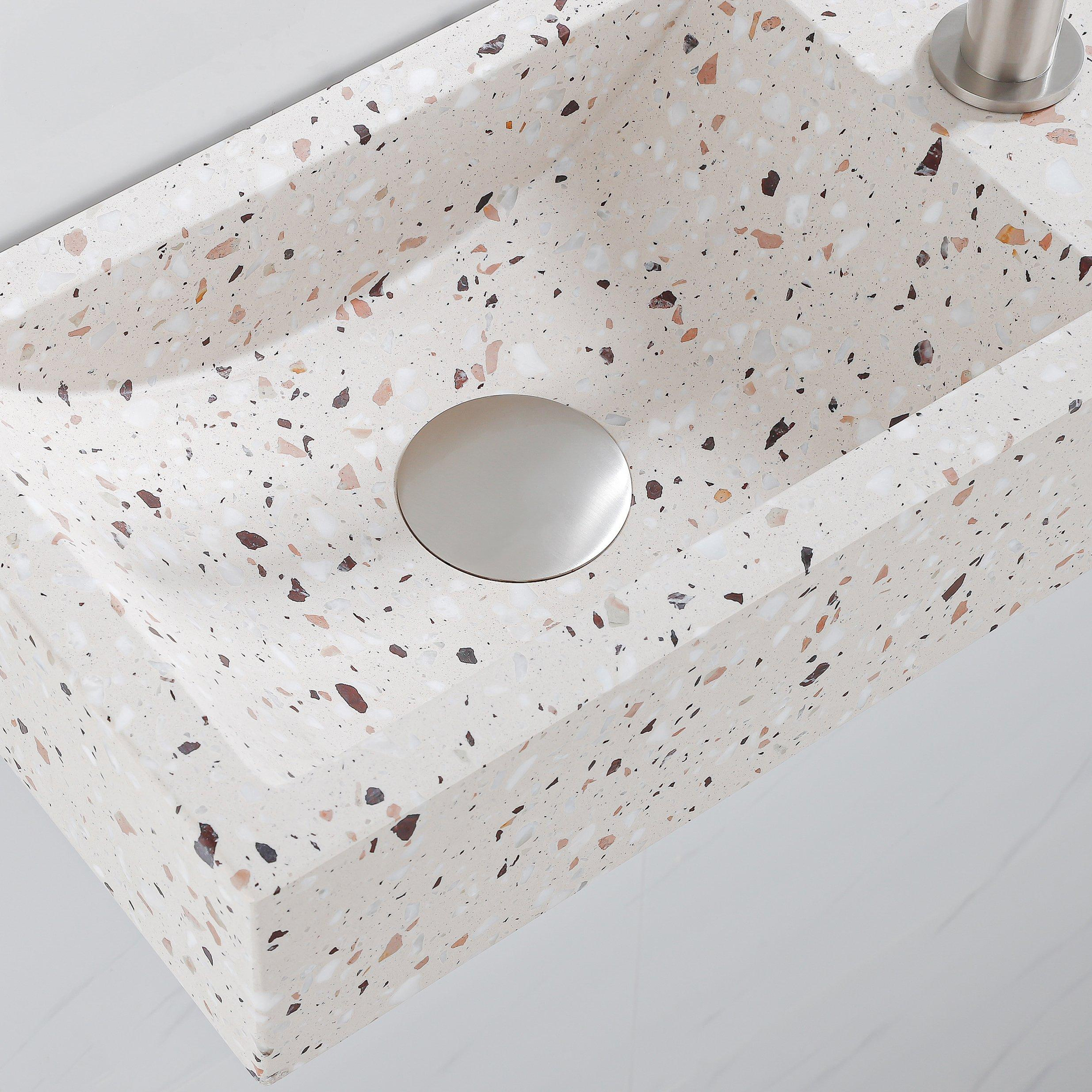 Saniclass Fuente Ensemble fontaine - 40x22x10cm - trou de robinet à droite - robinet fontaine Acier inoxydable brossé PVD - bouchon de vidange - siphon abaissé - beige mat