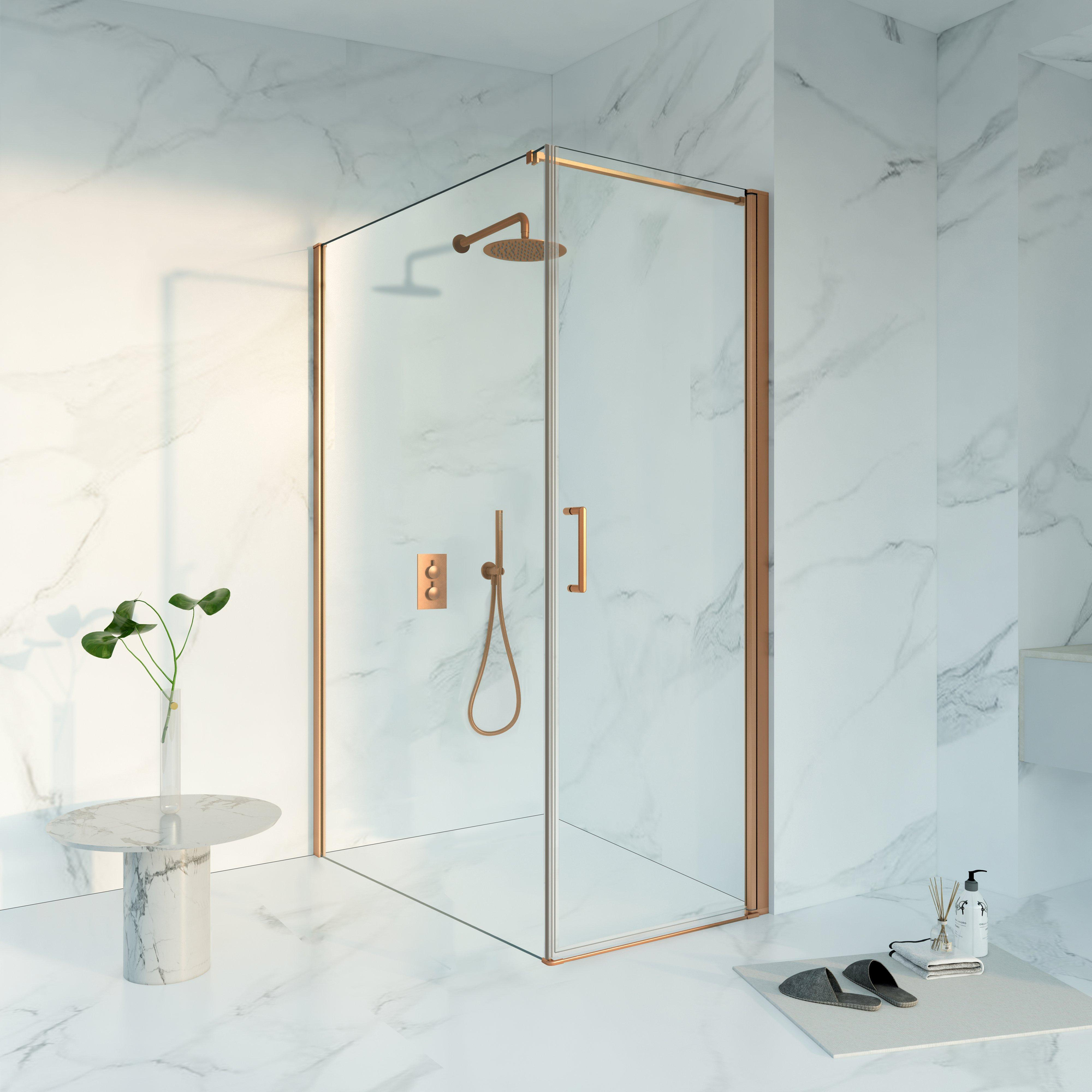 ÉlégantCette magnifique acquisition pour votre salle de bain dégage une atmosphère subtile mais impressionnante grâce à son design élégant. Le profil en cuivre PVD brossé ajoute une apparence raffinée et chaleureuse, créant un effet luxueux sans être écrasant. Le choix du verre de sécurité disponible avec traitement anti-calcaire souligne non seulement l'importance esthétique, mais aussi les qualités durables. Cette combinaison dégage clairement un savoir-faire et une esthétique réfléchie. L'ensemble du design est soigneusement équilibré pour offrir à la fois plaisir visuel et commodités fonctionnelles. Votre salle de bain devient une véritable oasis de calme et de style, grâce à la magnifique finition qui dégage une élégance intemporelle. Ce produit est conçu avec un souci du détail et s'intègre parfaitement dans un mode de vie moderne où confort et classe se rencontrent.