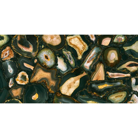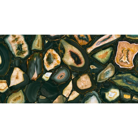 La combinaison du Viridian gold avec une finition brillante donne immédiatement à votre salle de bains une allure exclusive. Le jeu de couleurs évoque le marbre luxueux, mais dans une variante contemporaine et décorative qui s’intègre parfaitement aux salles de bains modernes et design. Associez ce carreau à des robinets couleur or pour une atmosphère chaleureuse et hôtel chic, ou au contraire à du noir et du blanc mat pour un contraste graphique et audacieux. Grâce au grand format de 60x120 cm, les veines et nuances se prolongent joliment, ce qui agrandit optiquement l’espace et apporte plus d’unité. Vous créez ainsi avec relativement peu d’éléments une apparence riche et réfléchie, sans que cela ne devienne chargé ou agité.